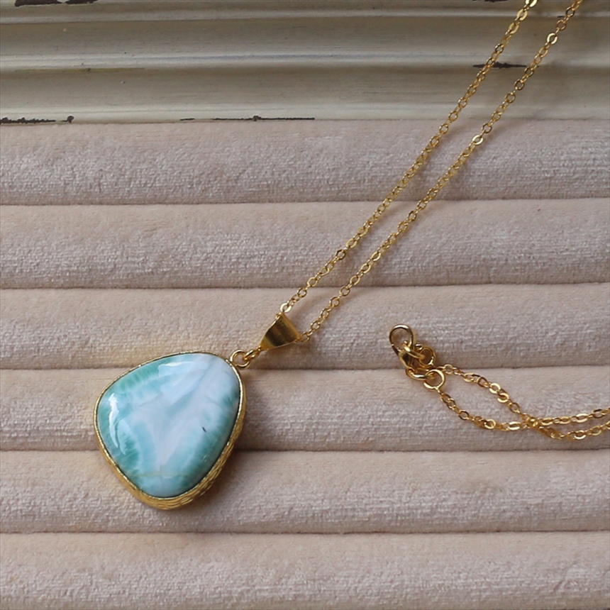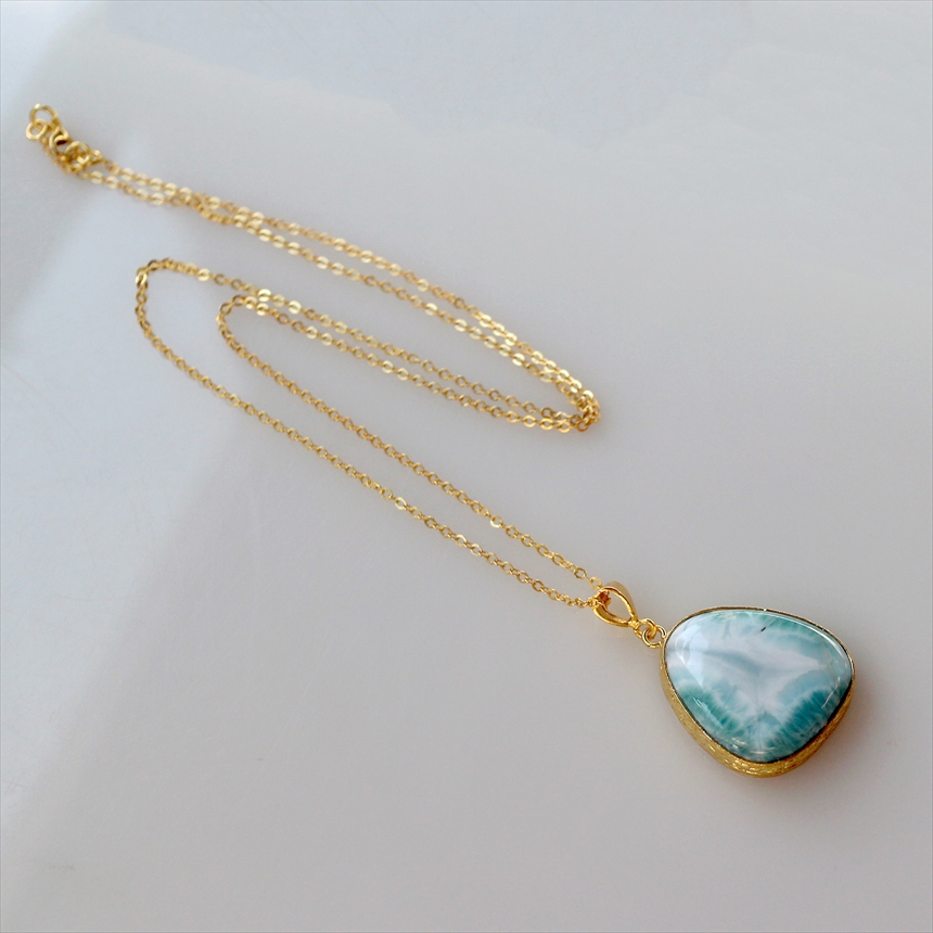 ラリマー ペンダント 22KGP カボション ラフカット アルサメイア 天然石一粒ネックレス トルコジュエリー