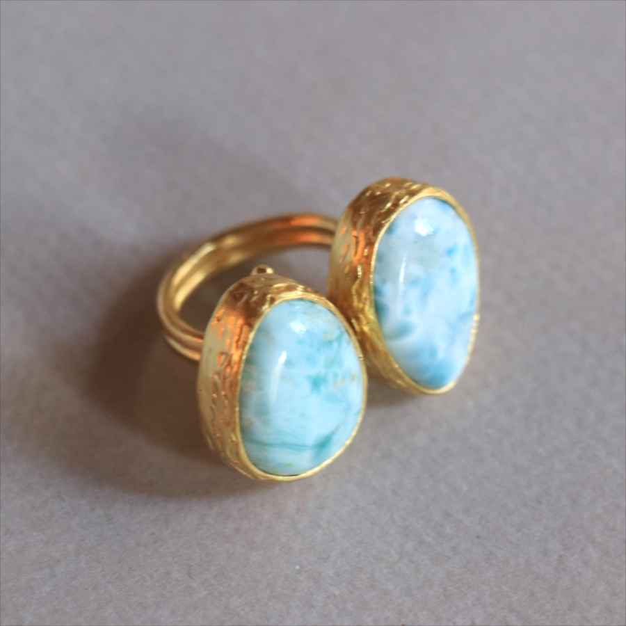 ラリマーダブルリング ドロップ アルサメイア トルコジュエリー カラーストーン