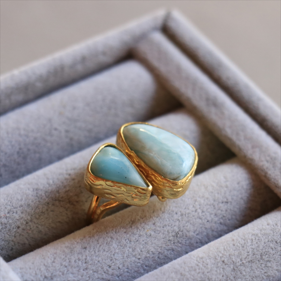 ラリマーダブルリング ひし形 アルサメイア トルコジュエリー カラーストーン