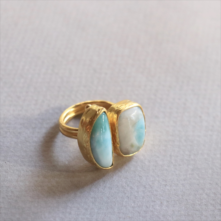 ラリマーダブルリング スクエア&クレセント アルサメイア トルコジュエリー カラーストーン