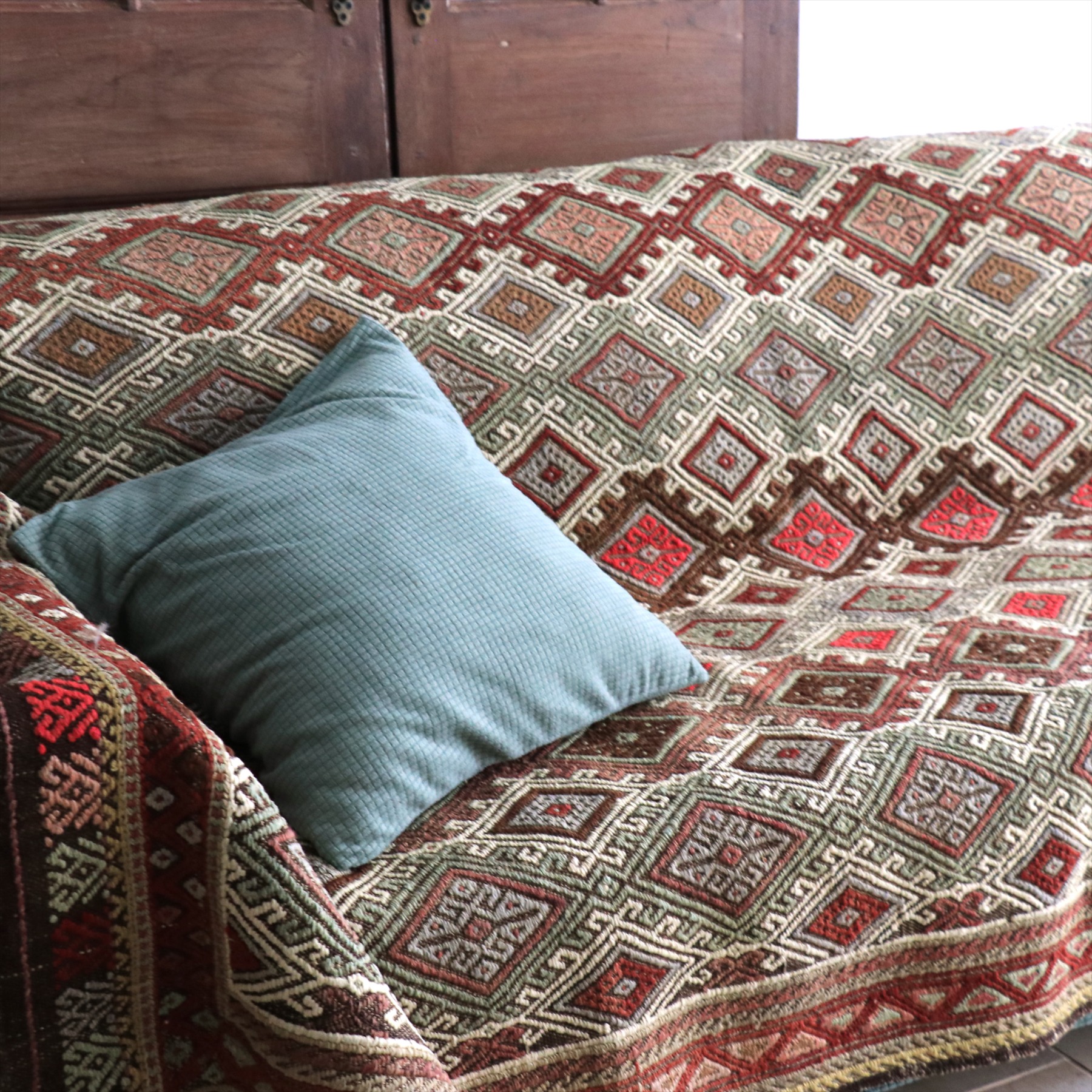 ジジムでドラゴンのモチーフが連なるように全面に織り込まれています。ブラウンベースに、差し色で入ったレッドがアクセントになっています。