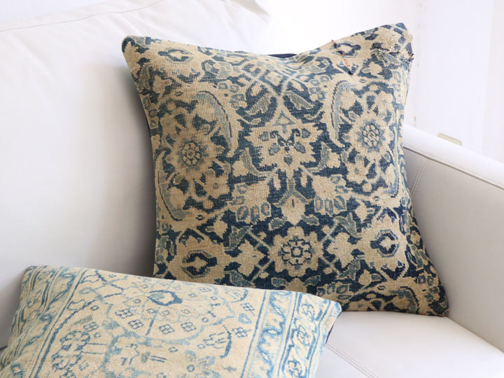 ヴィンテージ 絨毯クッション45×45cm ブリーチしたアンティーク加工 Old Carpet Cushion 【OUTLET・難あり】