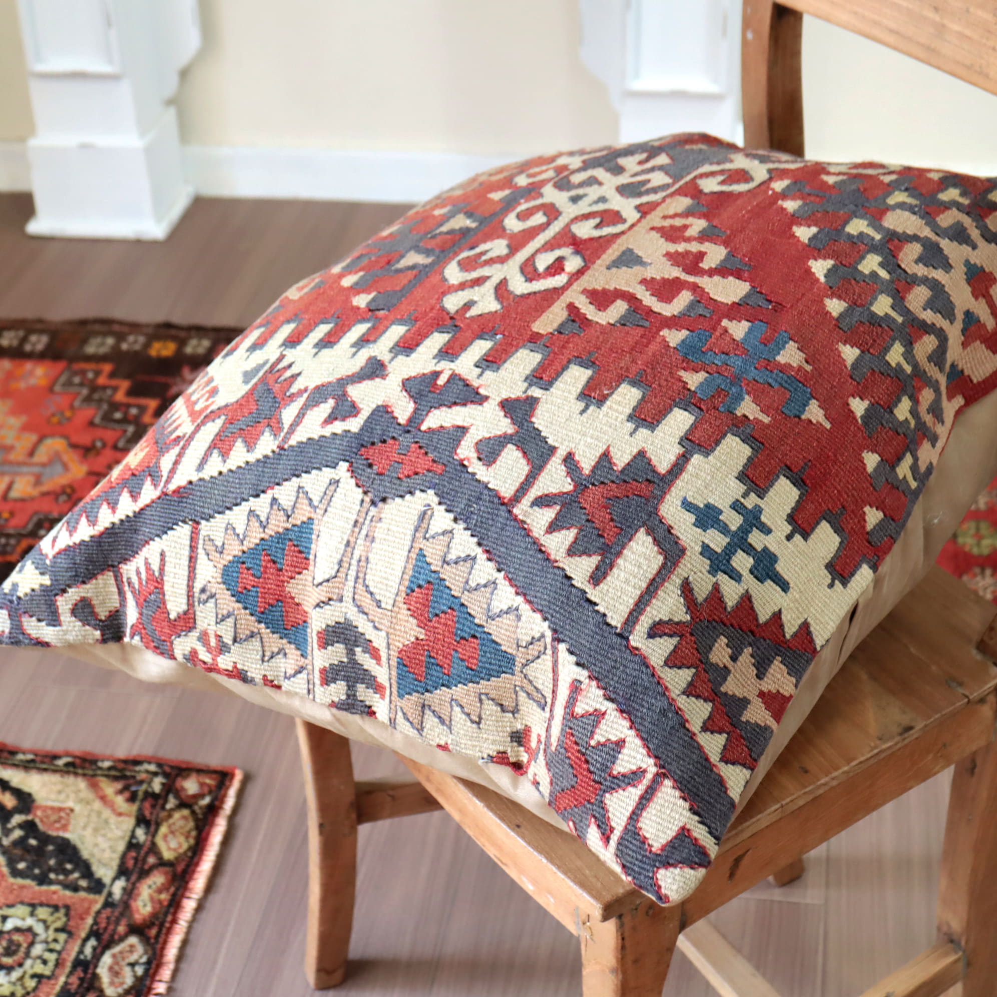 Key:Old Kilim, Kilim Cushion, Turkish Kilim, BOHO, Bohemian Decor, Vintage kilim, クッションカバー60cm, オールドキリム, トルコ, ヴィンテージキリム, トライバルラグ, ピロー, ボヘミアンスタイル, BO-HO, ウール100%, 手織り, 一点もの, ガラタバザール