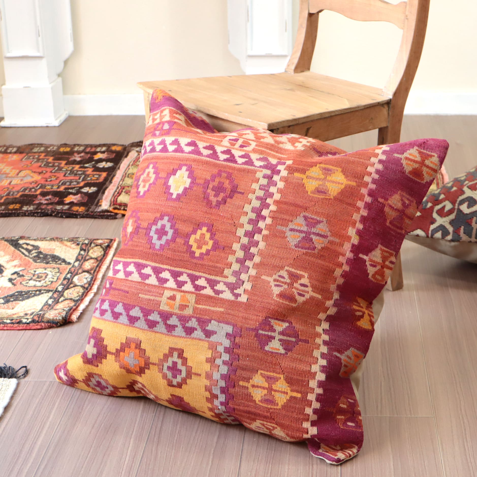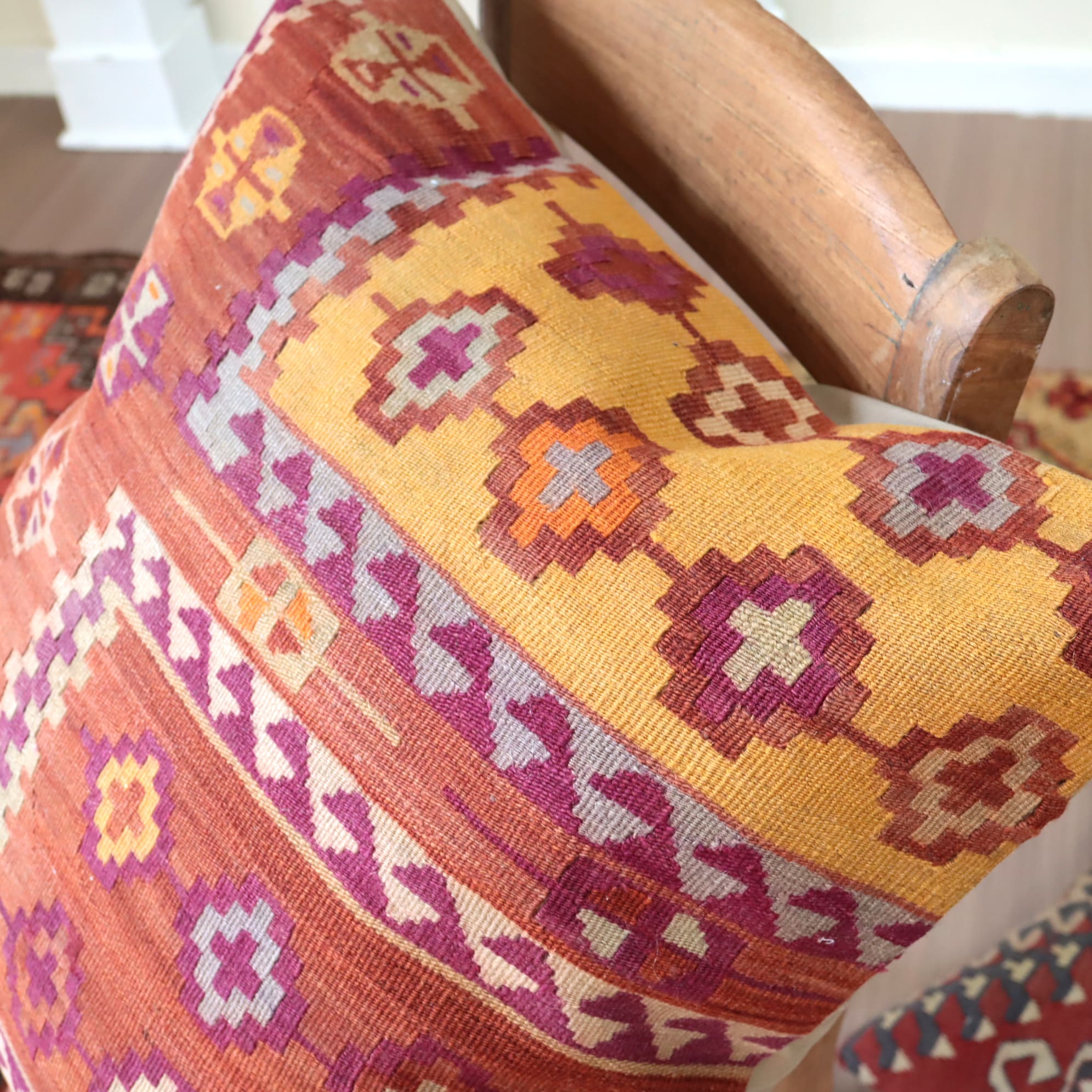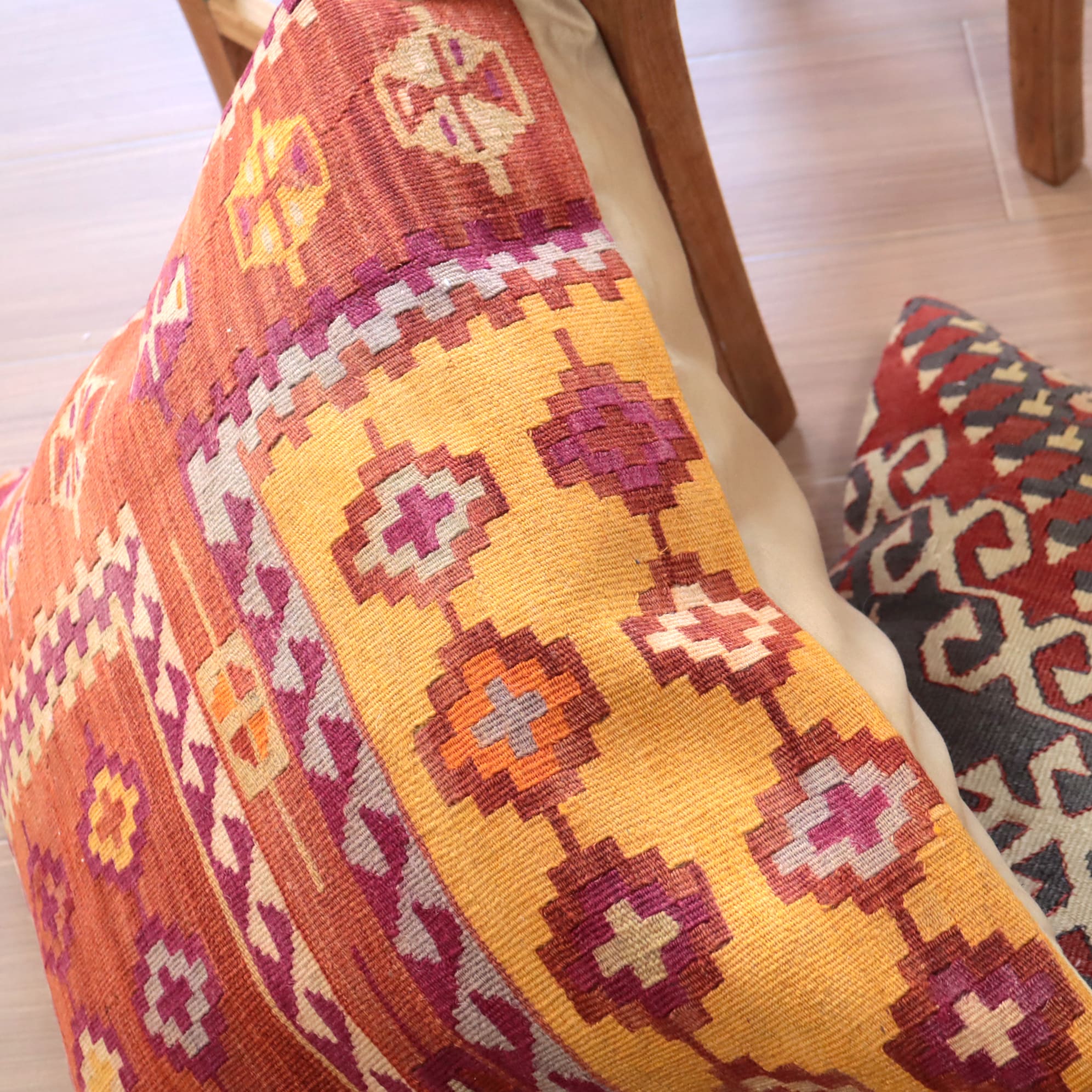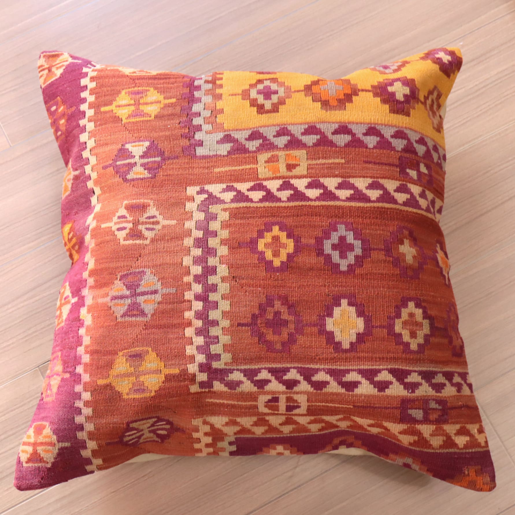 Key:Old Kilim, Kilim Cushion, Turkish Kilim, BOHO, Bohemian Decor, Vintage kilim, クッションカバー60cm, オールドキリム, トルコ, ヴィンテージキリム, トライバルラグ, ピロー, ボヘミアンスタイル, BO-HO, ウール100%, 手織り, 一点もの, ガラタバザール