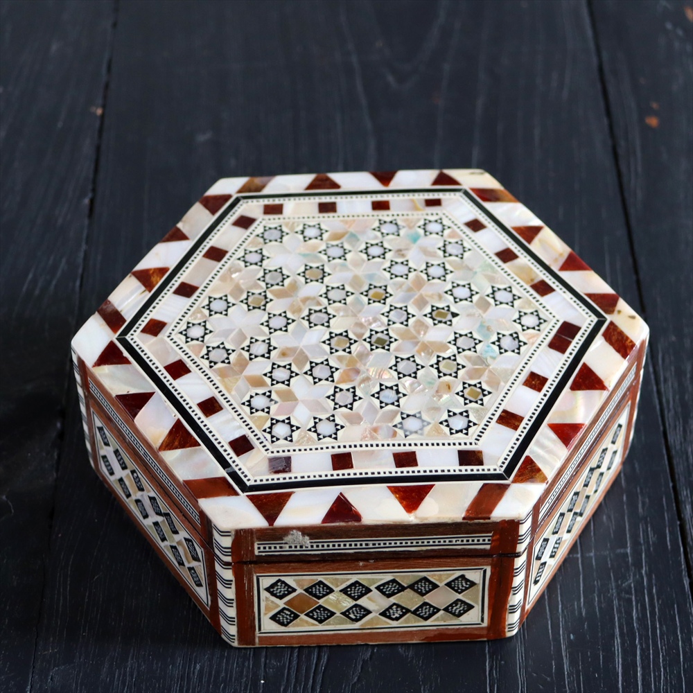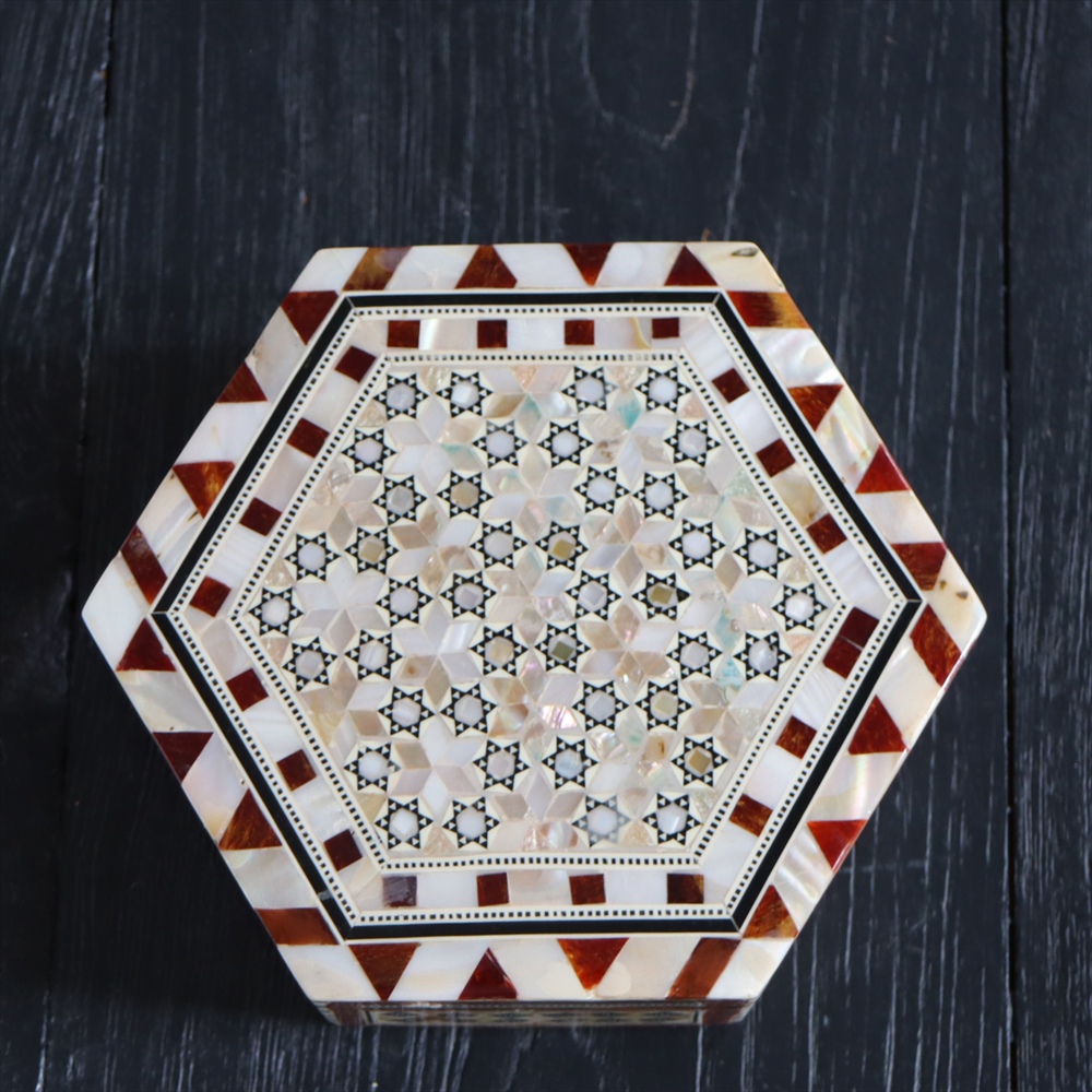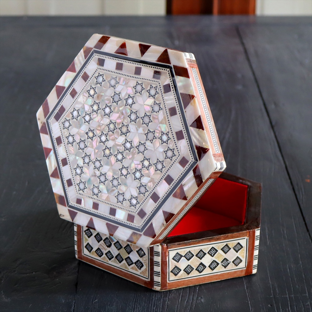 - 【15%OFF】エジプト製螺鈿ジュエリーボックス六角形 Mother of Pearl Jewelry Box Hexagon/