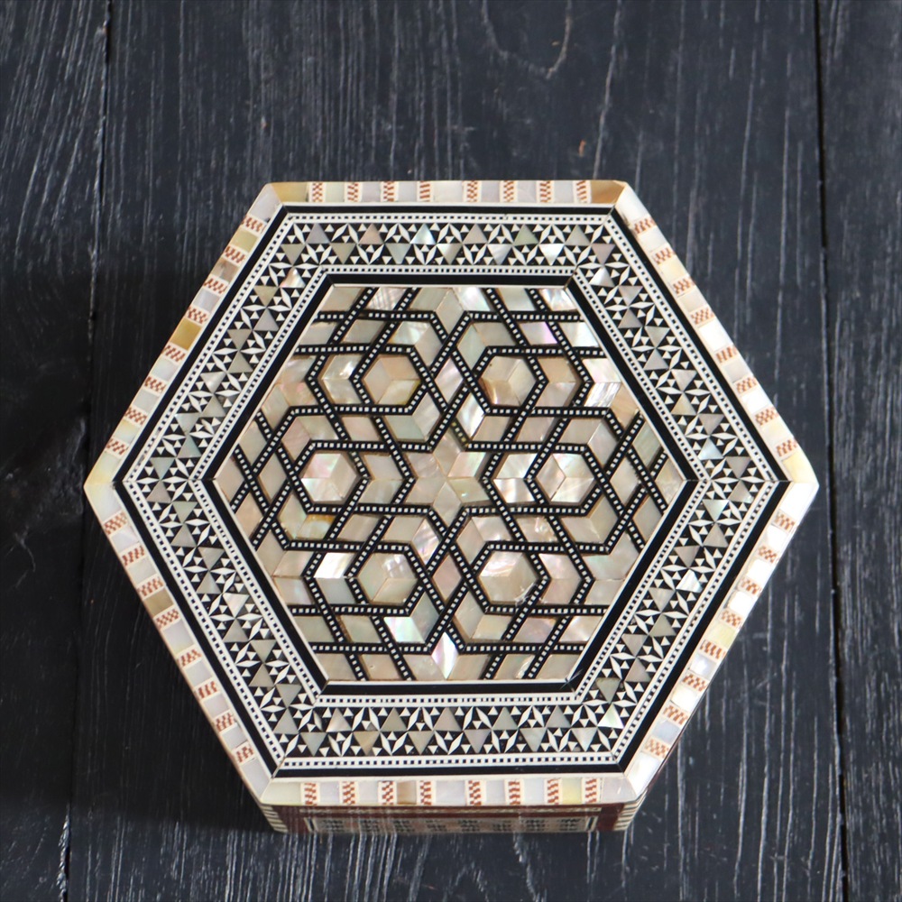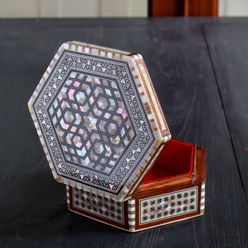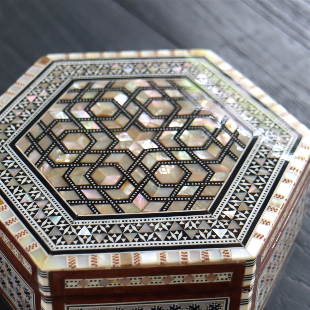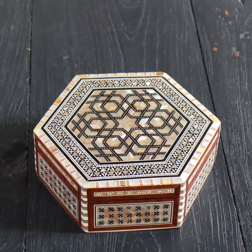 - 【15%OFF】エジプト製螺鈿ジュエリーボックス六角形 Mother of Pearl Jewelry Box Hexagon/