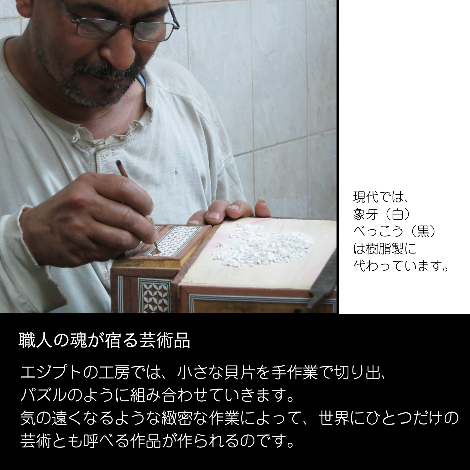 エジプトの職人さんがひとつひとつ手作りしています。細工が少し乱れているところや、塗装が均一でないところなどありますことをご了承願います。