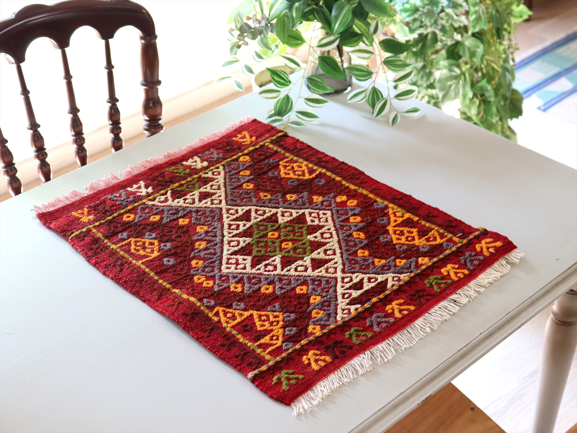 - 【15%OFF】オールドキリム アダナ51×45cm 小さな正方形 ジジム織り