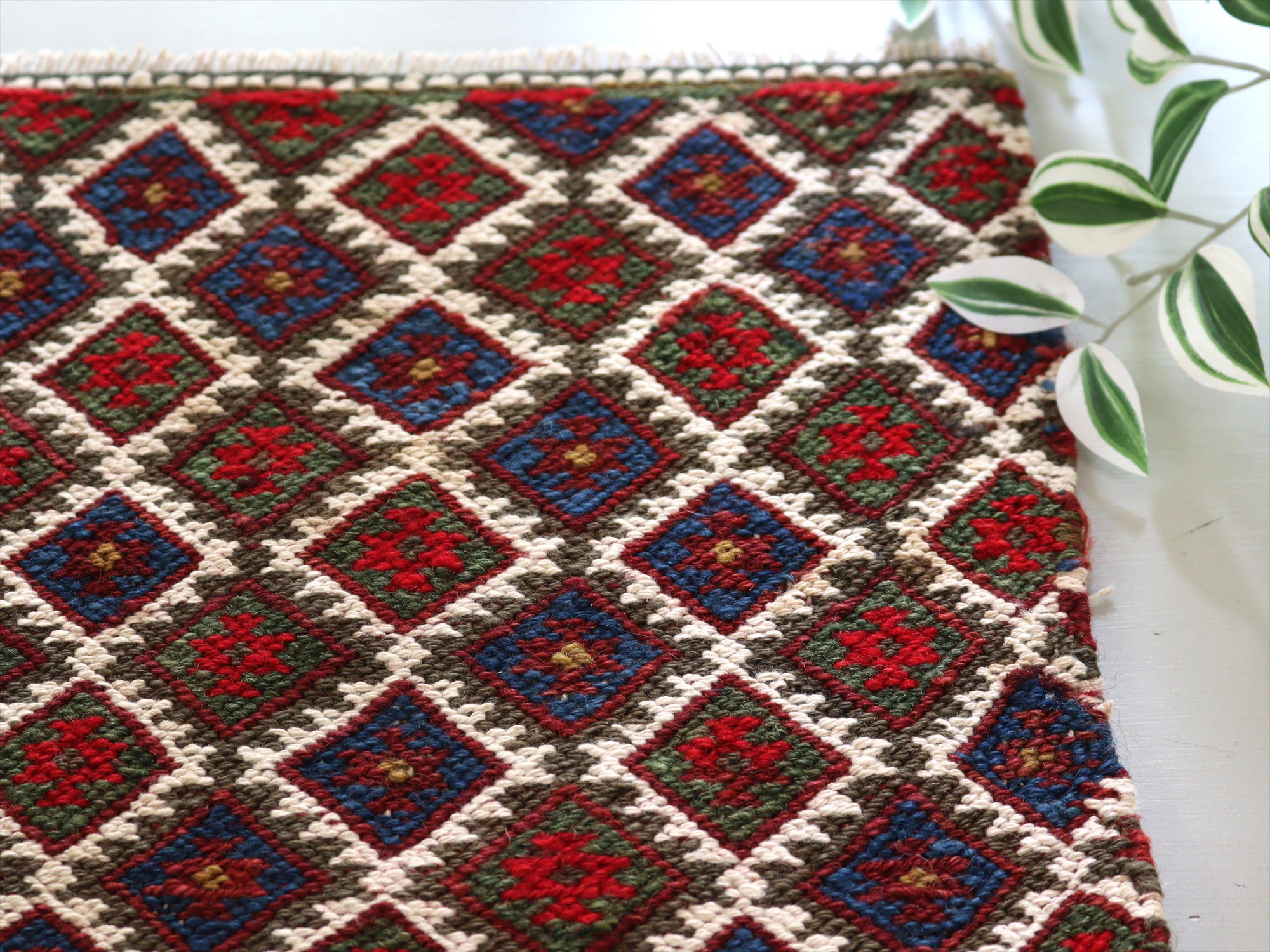 箱型の収納ケースのサイド部分に使われていた小さなキリム。カットされたものではなく、オリジナルのサイズです。
