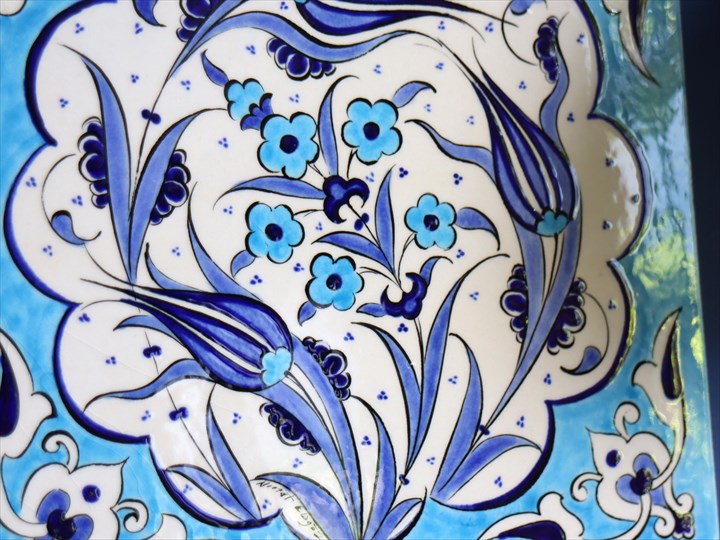 トルコの陶器産業の中心地「キュタフヤ」の工房で手書き絵付けされているタイルです。オスマントルコ時代からの伝統を守りつつも、新しいデザインや技術を取り入れた21世紀の伝統工芸品です。