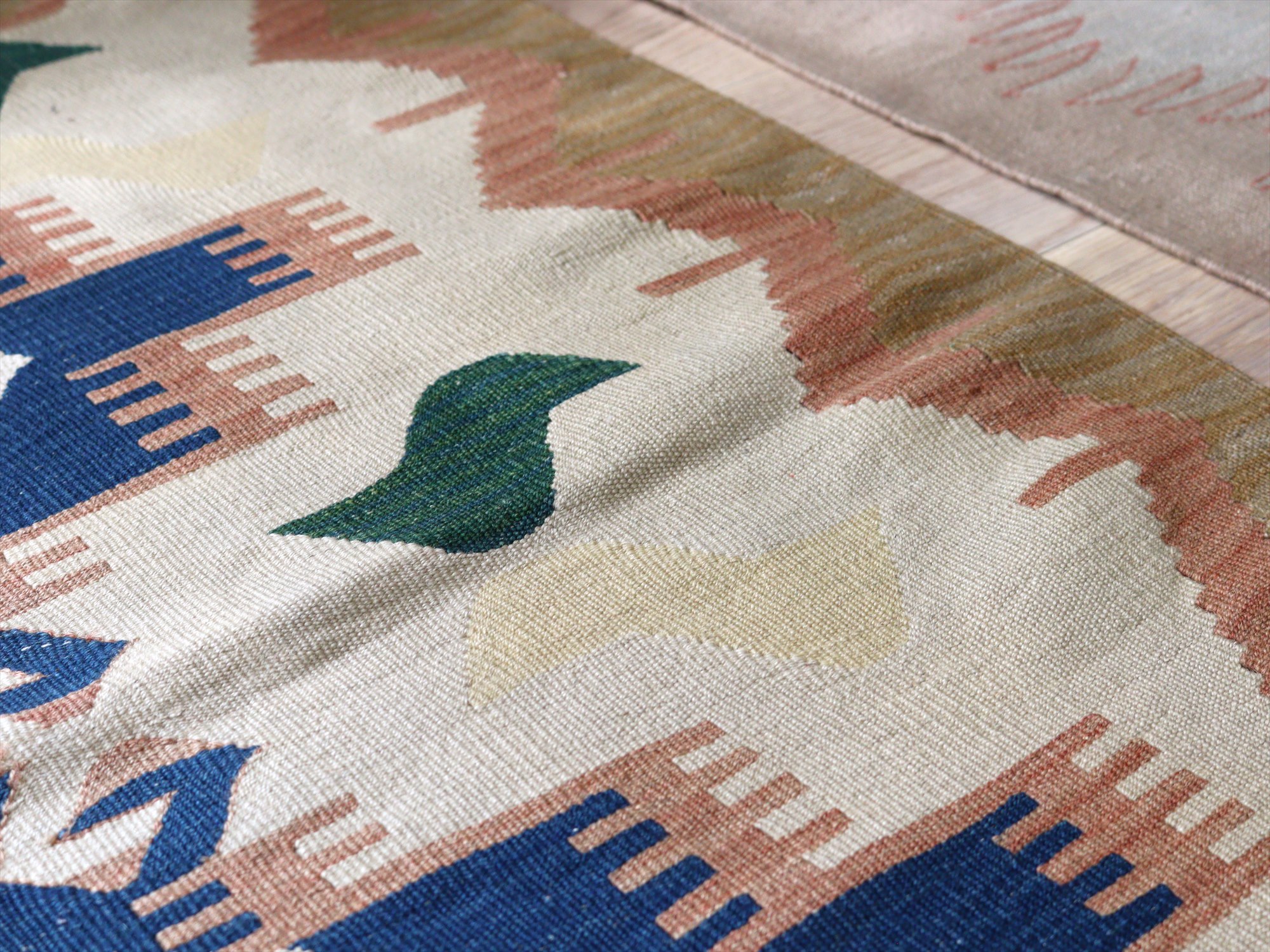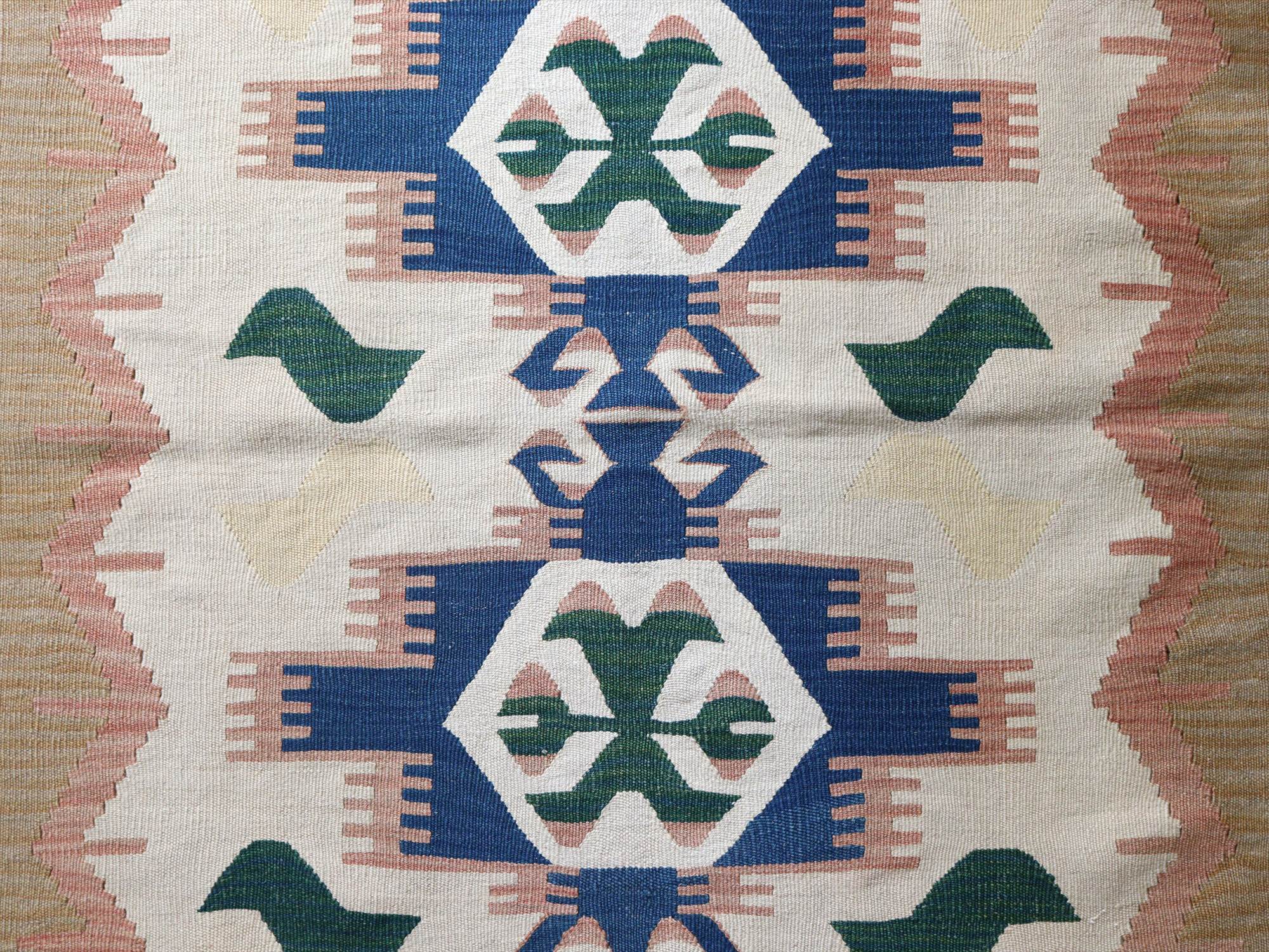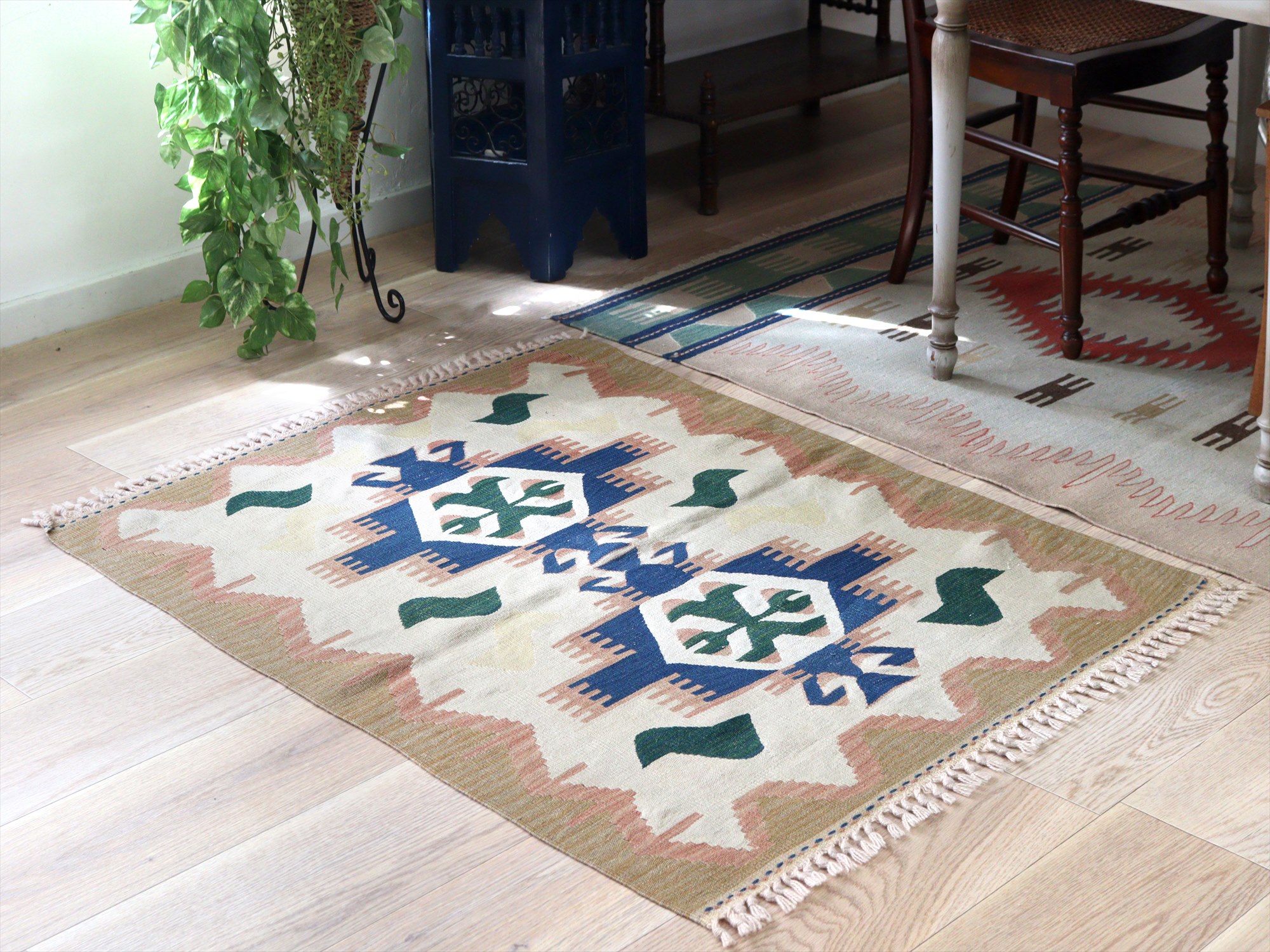 - トルコの手織りキリム ウシャク112×91cm 狼の口 ベージュ