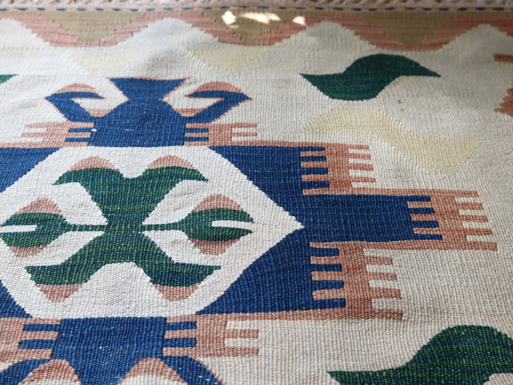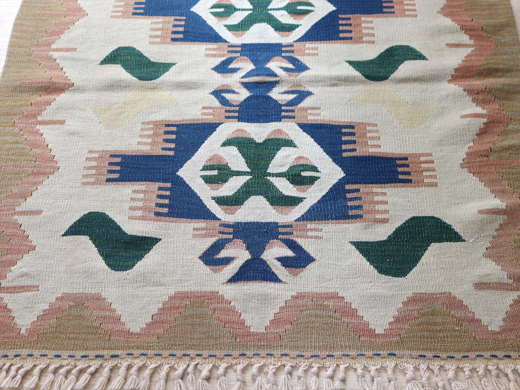 トルコの手織りキリム ウシャク112×91cm 狼の口 ベージュ