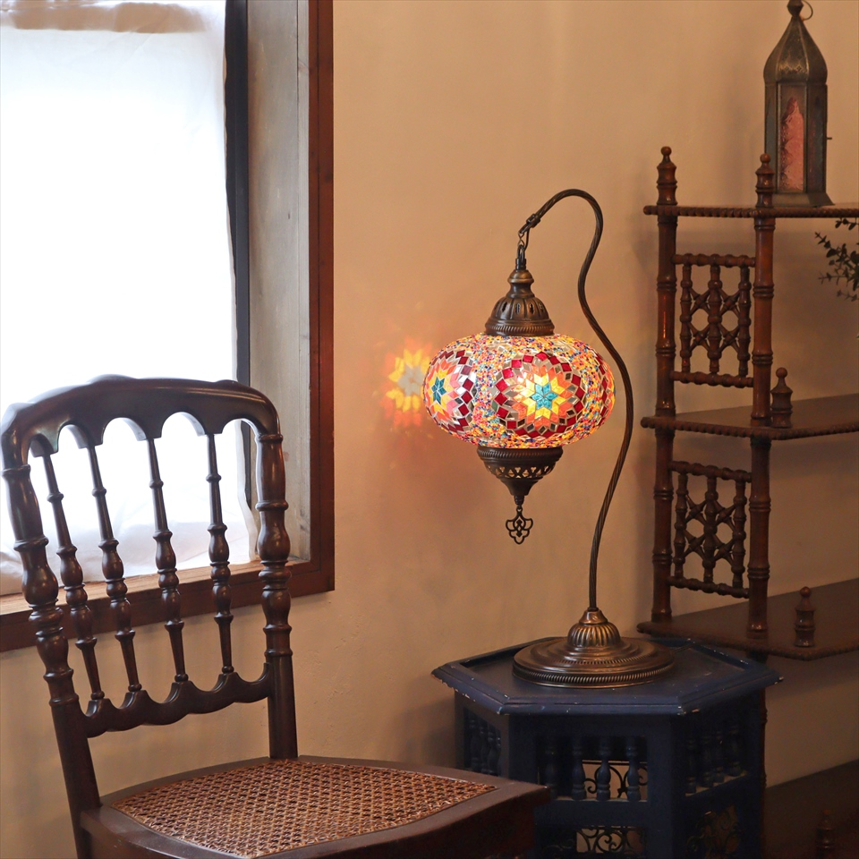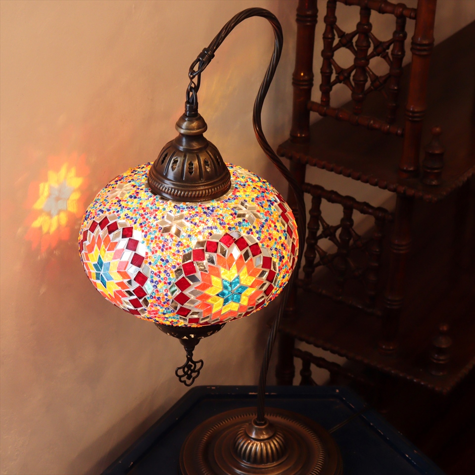 トルコで手作りされたモザイクガラス球が使われたスタンドランプ。
