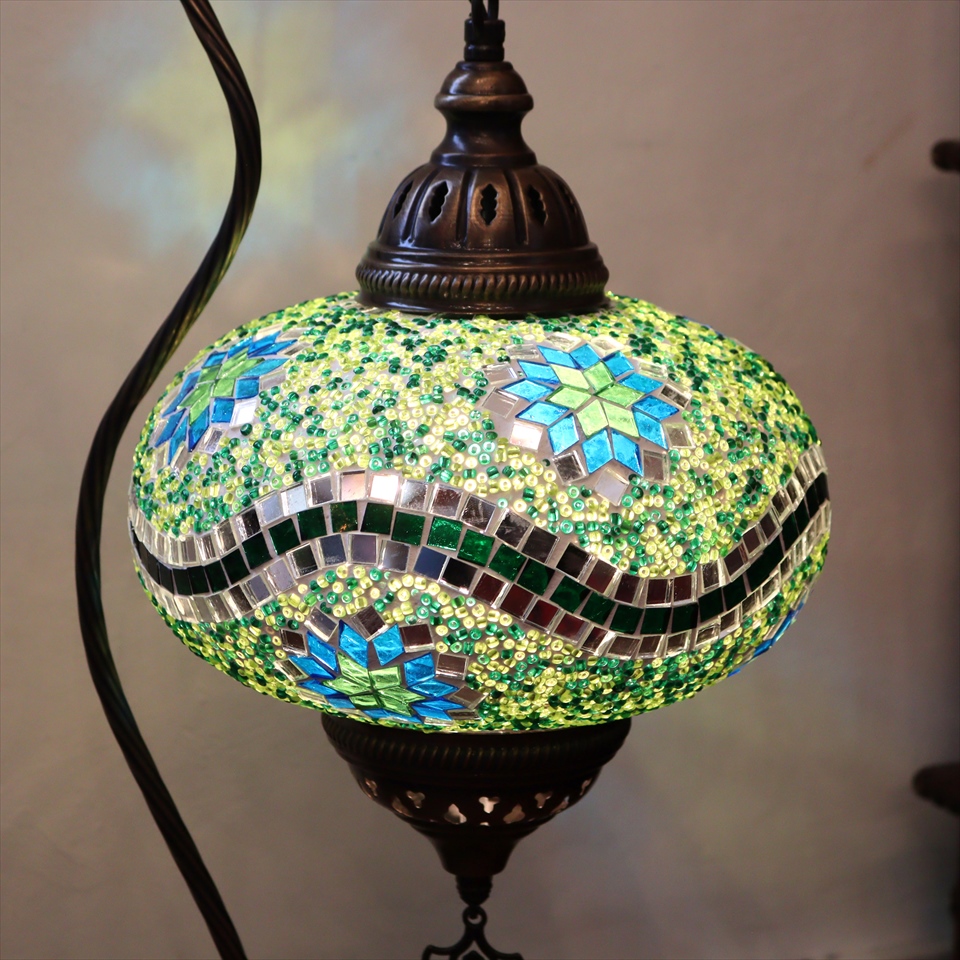 - 【10%OFF】トルコランプ モザイクスタンドランプ ハンギング 全高62cm ガラス直径24cm グリーン/ブルー