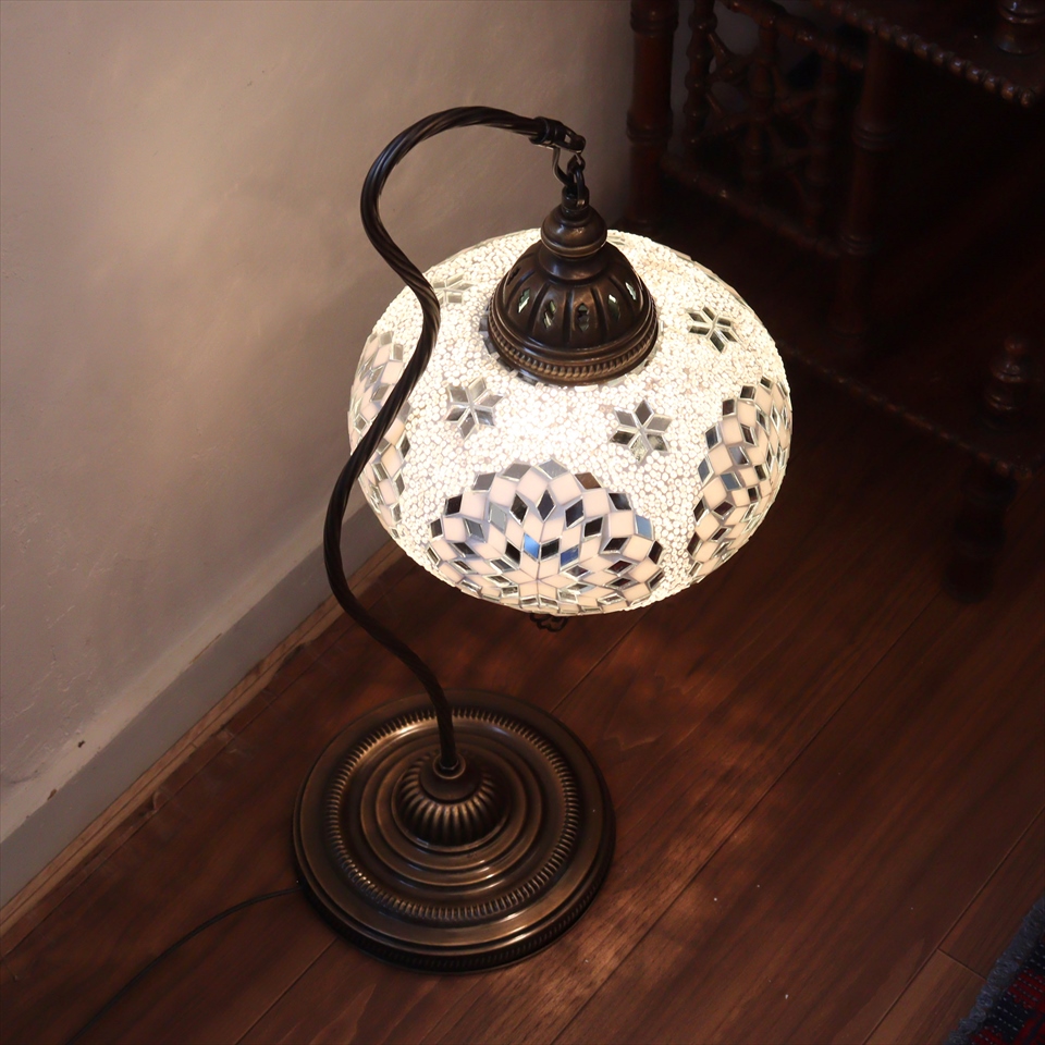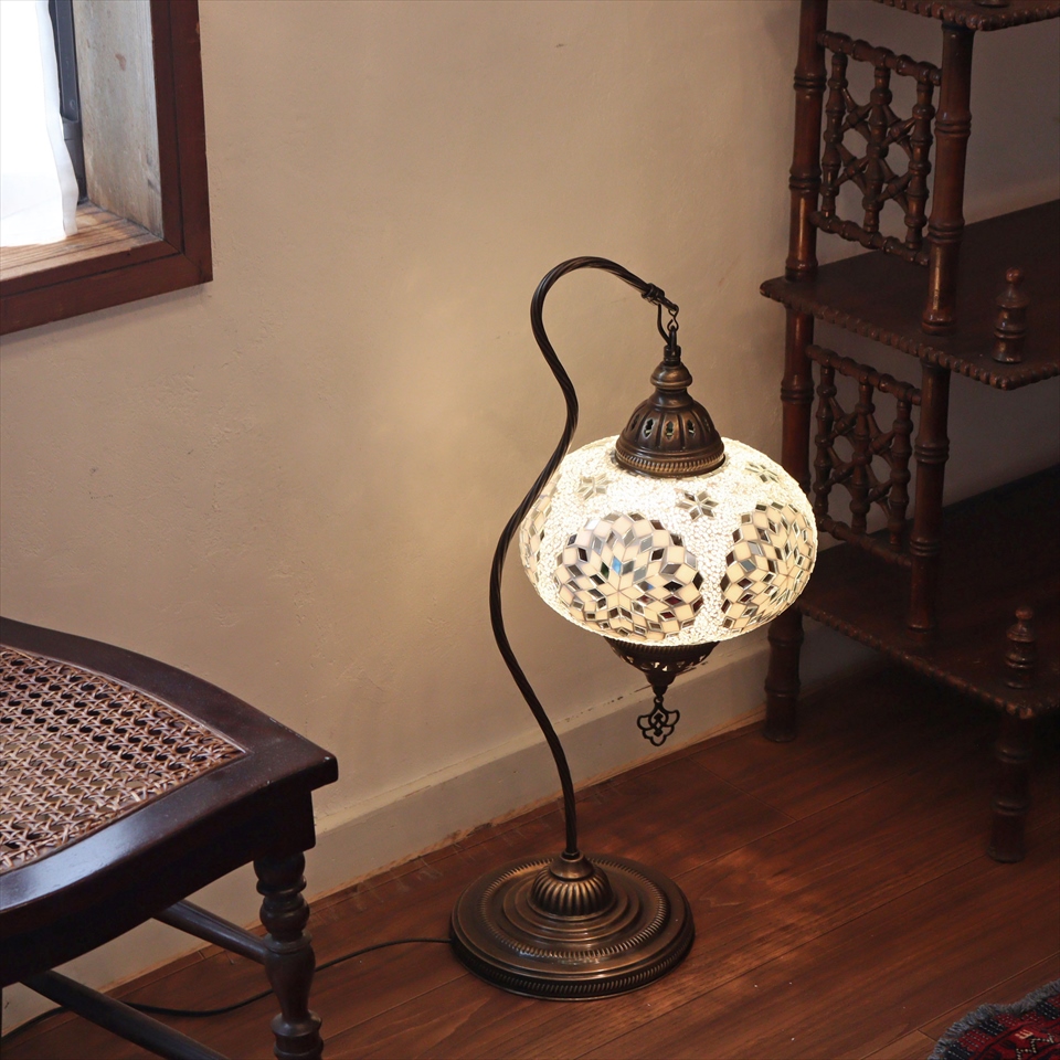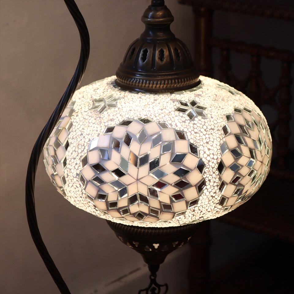 - 【10%OFF】トルコランプ モザイクスタンドランプ ハンギング 全高62cm ガラス直径24cm ホワイト