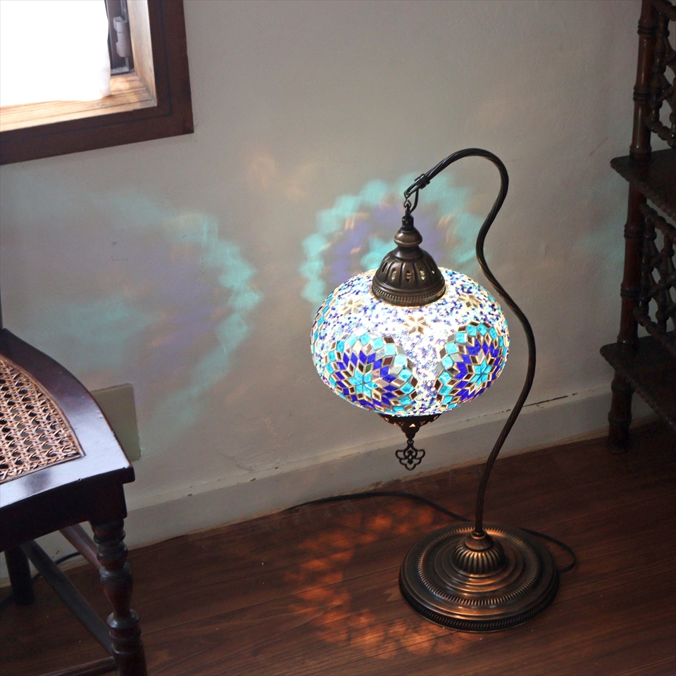 トルコで手作りされたモザイクガラス球が使われたスタンドランプ。