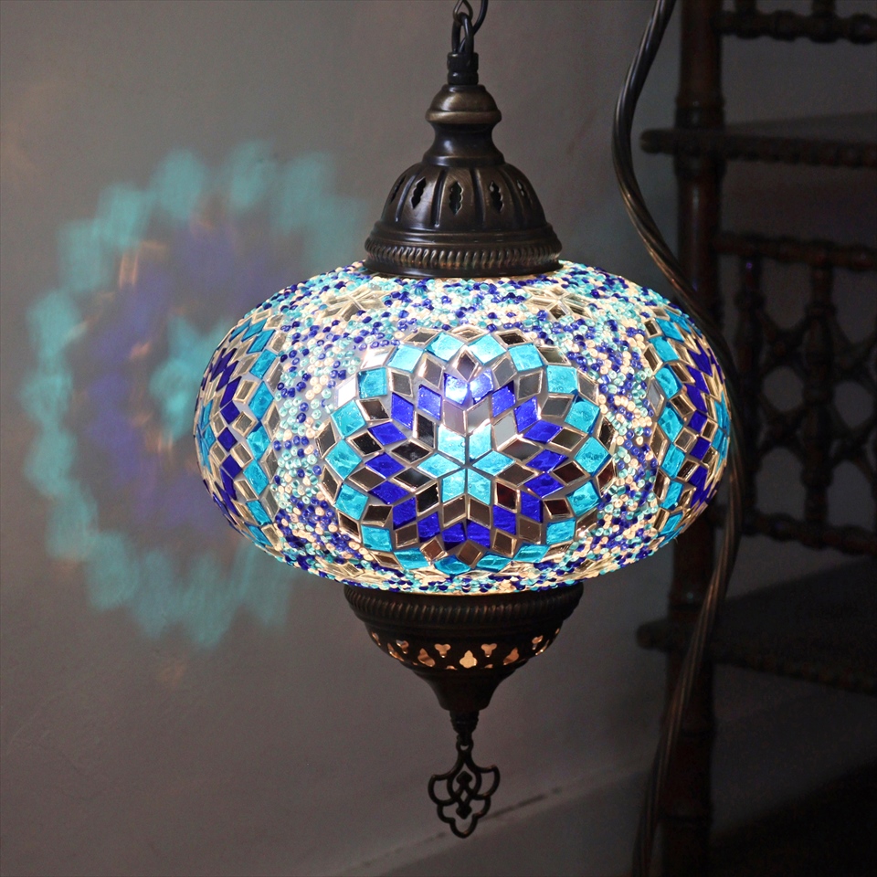 - 【10%OFF】トルコランプ モザイクスタンドランプ ハンギング 全高62cm ガラス直径24cm ブルー