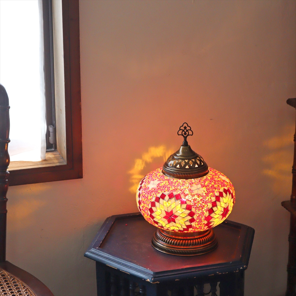 Key:モザイクランプ トルコランプ トルコモザイクランプ テーブルランプ テーブルライト テーブル照明 デスクライト 置き型照明 置き型ランプ 間接照明 オリエンタルランプ エスニックランプ エスニックテイスト照明 エスニックインテリア スイッチ付きコード