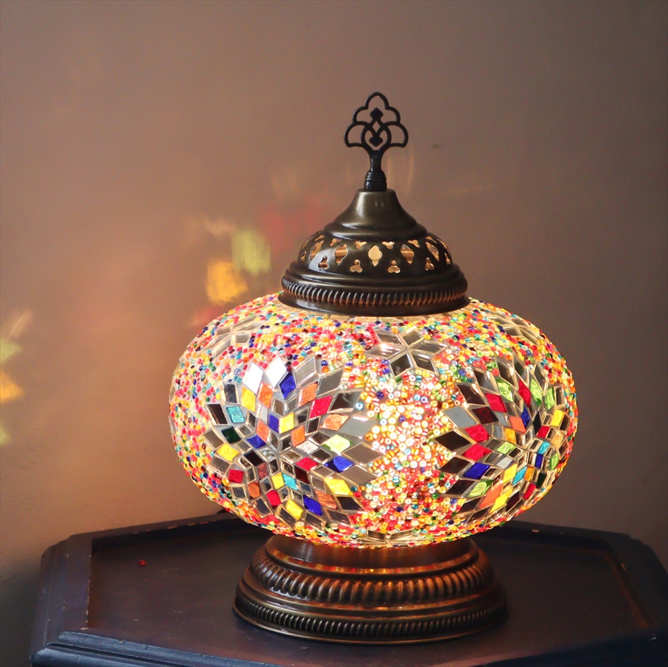 - 【10%OFF】トルコランプ モザイクランプ テーブルランプ 全高32cm 直径24cm ミックスカラー