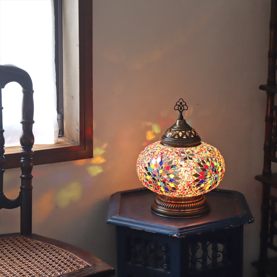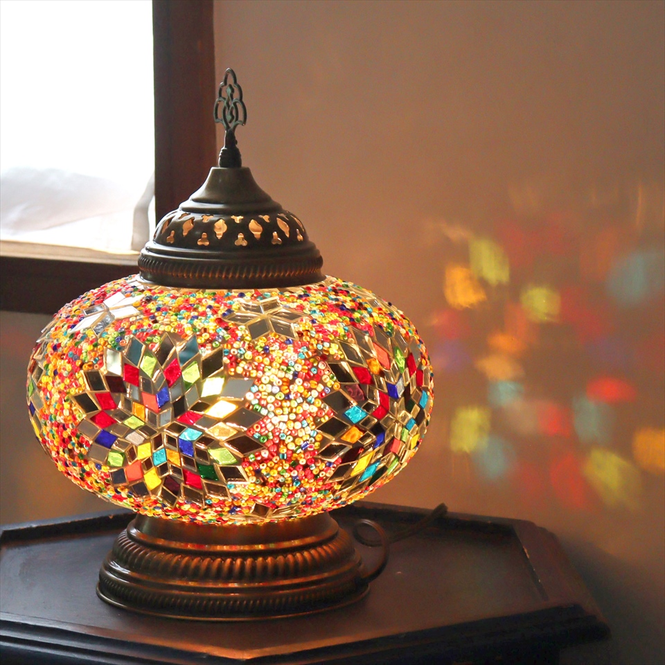 Key:モザイクランプ トルコランプ トルコモザイクランプ テーブルランプ テーブルライト テーブル照明 デスクライト 置き型照明 置き型ランプ 間接照明 オリエンタルランプ エスニックランプ エスニックテイスト照明 エスニックインテリア スイッチ付きコード