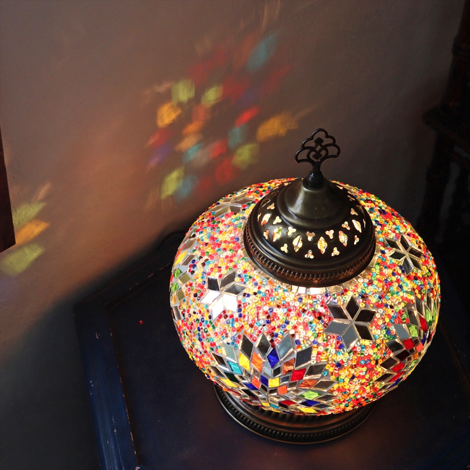 トルコで手作りされたモザイクガラス球が使われたスタンドランプ。
