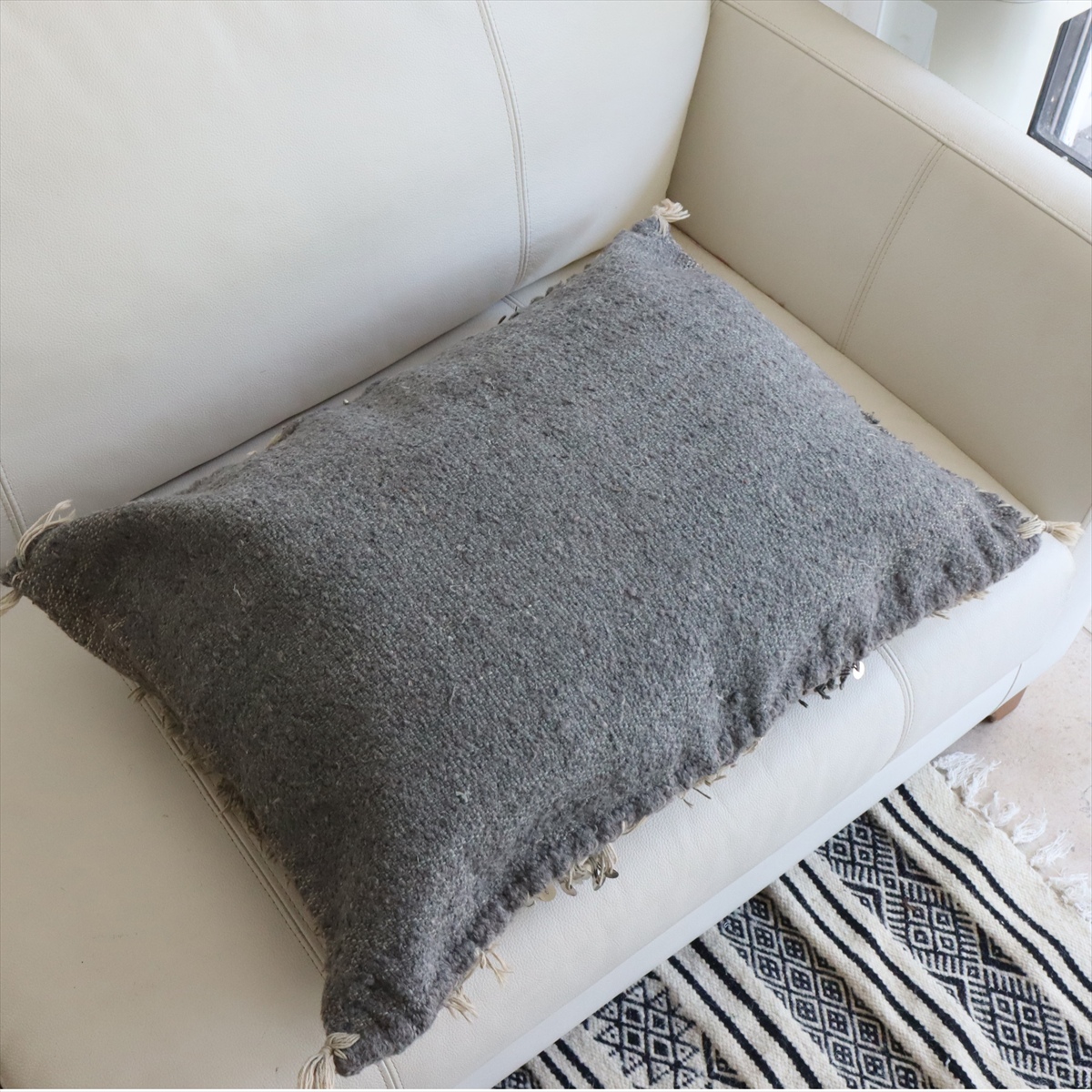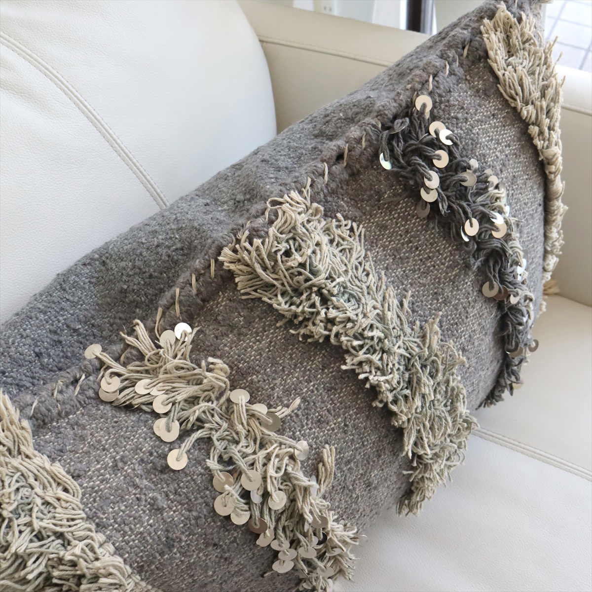 - オールドキリムクッション モロッコ オリジナル62×43cm ベルベル族 ハンドラ グレー スパンコール