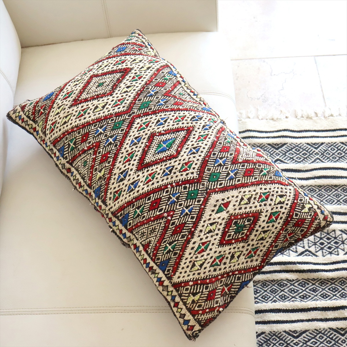 Key:オールドキリムクッションカバー ヴィンテージキリム モロッコ 手織りラグ トライバルラグ 一点もの 現品販売 キリムクッション ピロー 両面 Morocco pillow Cushion Kilim cushion