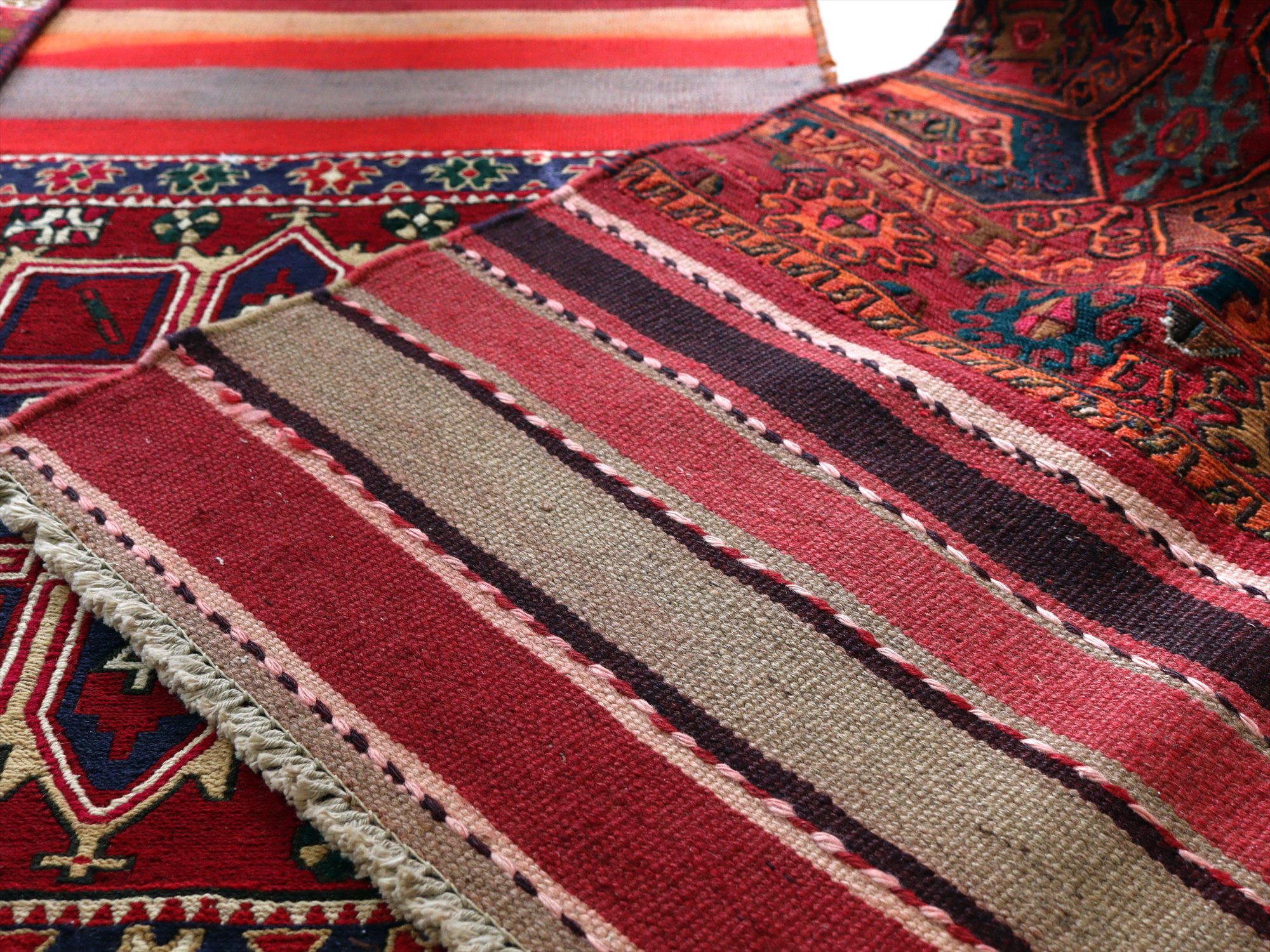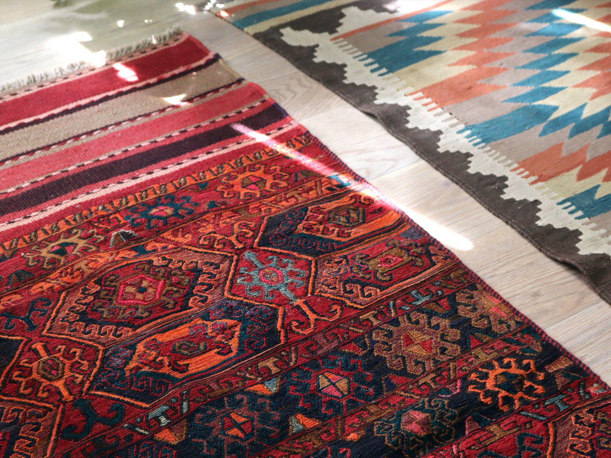 モチーフ部分は緻密なスマックで織られ、がっしりとした厚みあります。