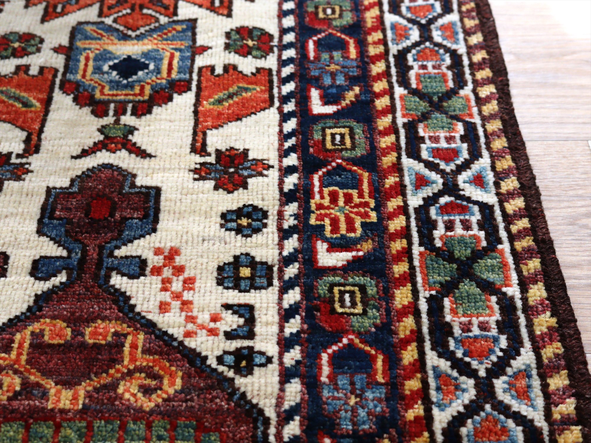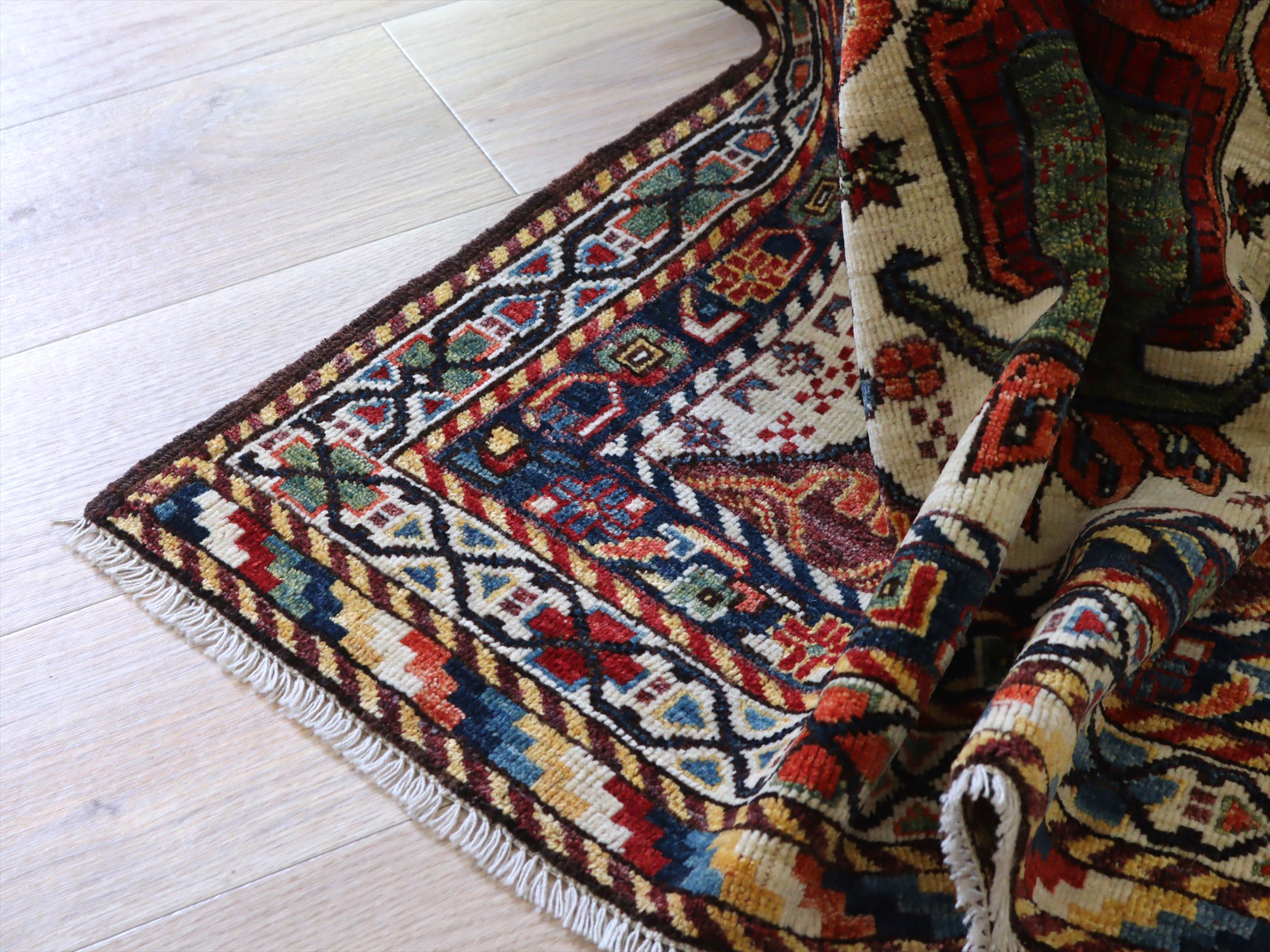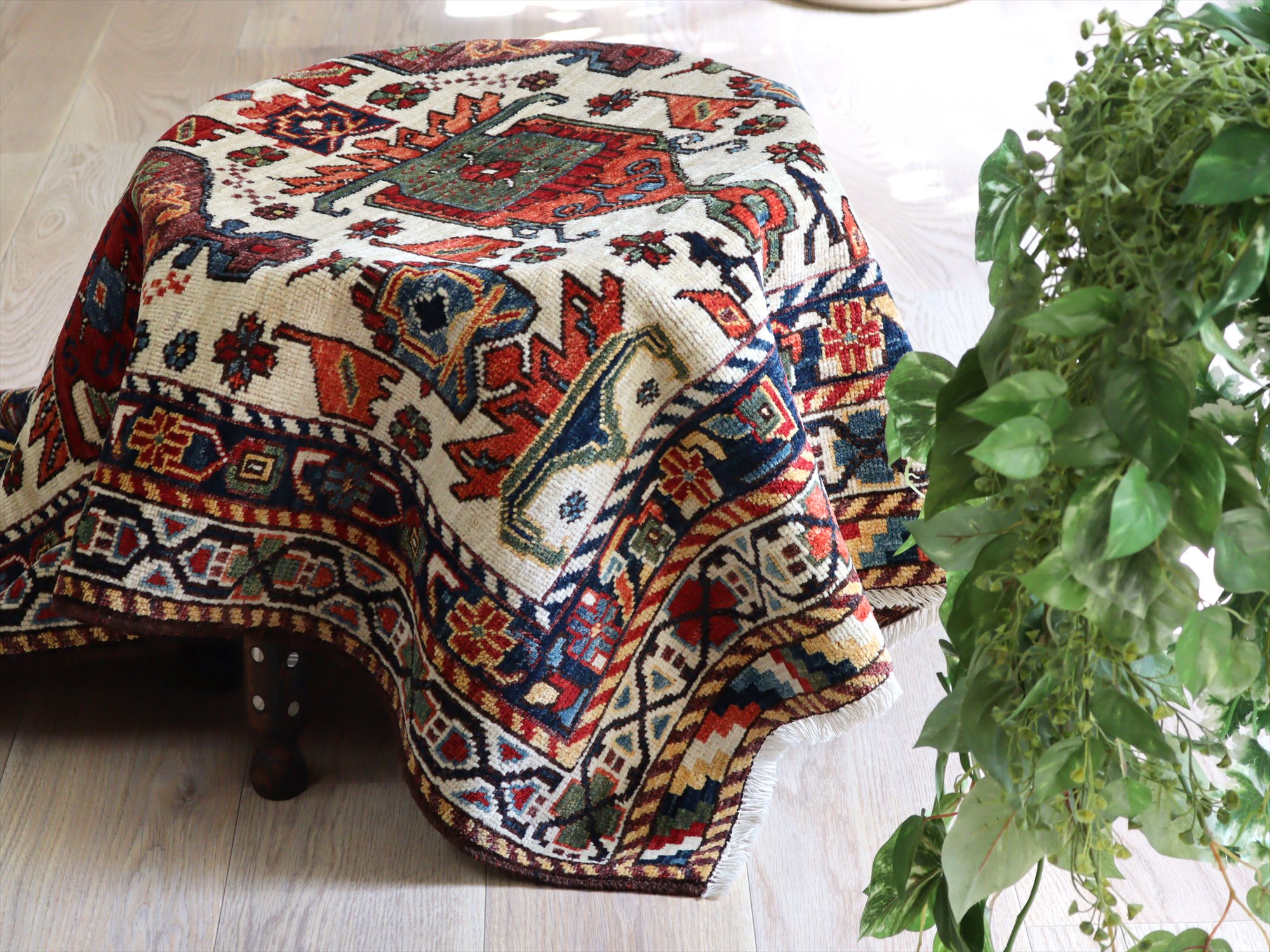 - 【15%OFF】手織りラグ 小花と幾何学模様152×104cm トルコの手織り絨毯 ベージュ 草木染