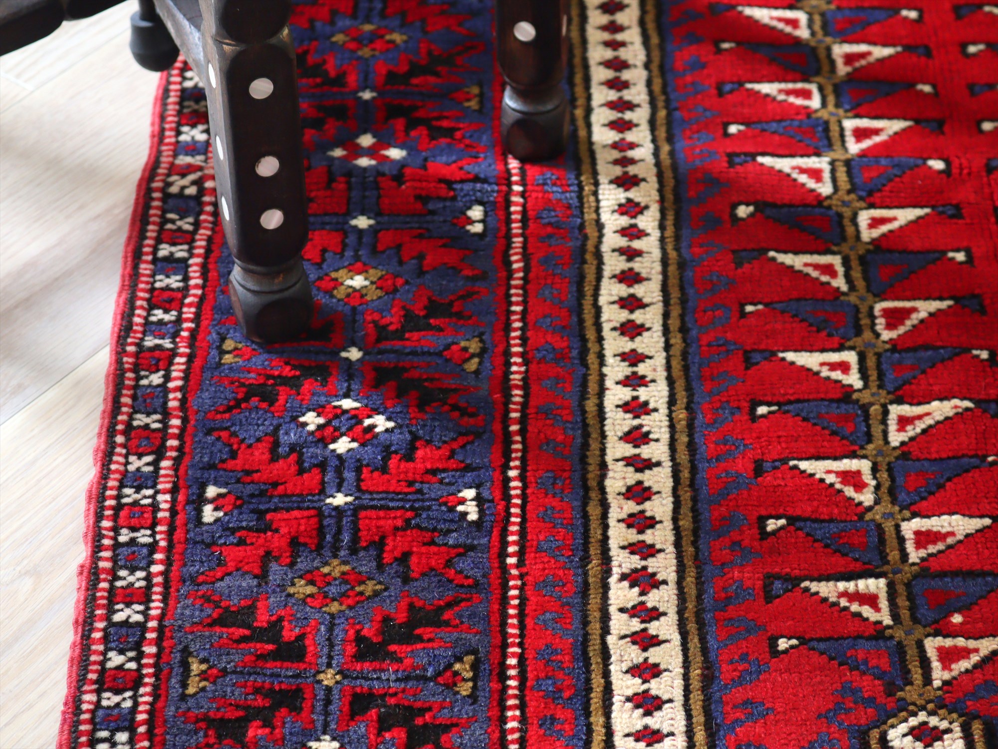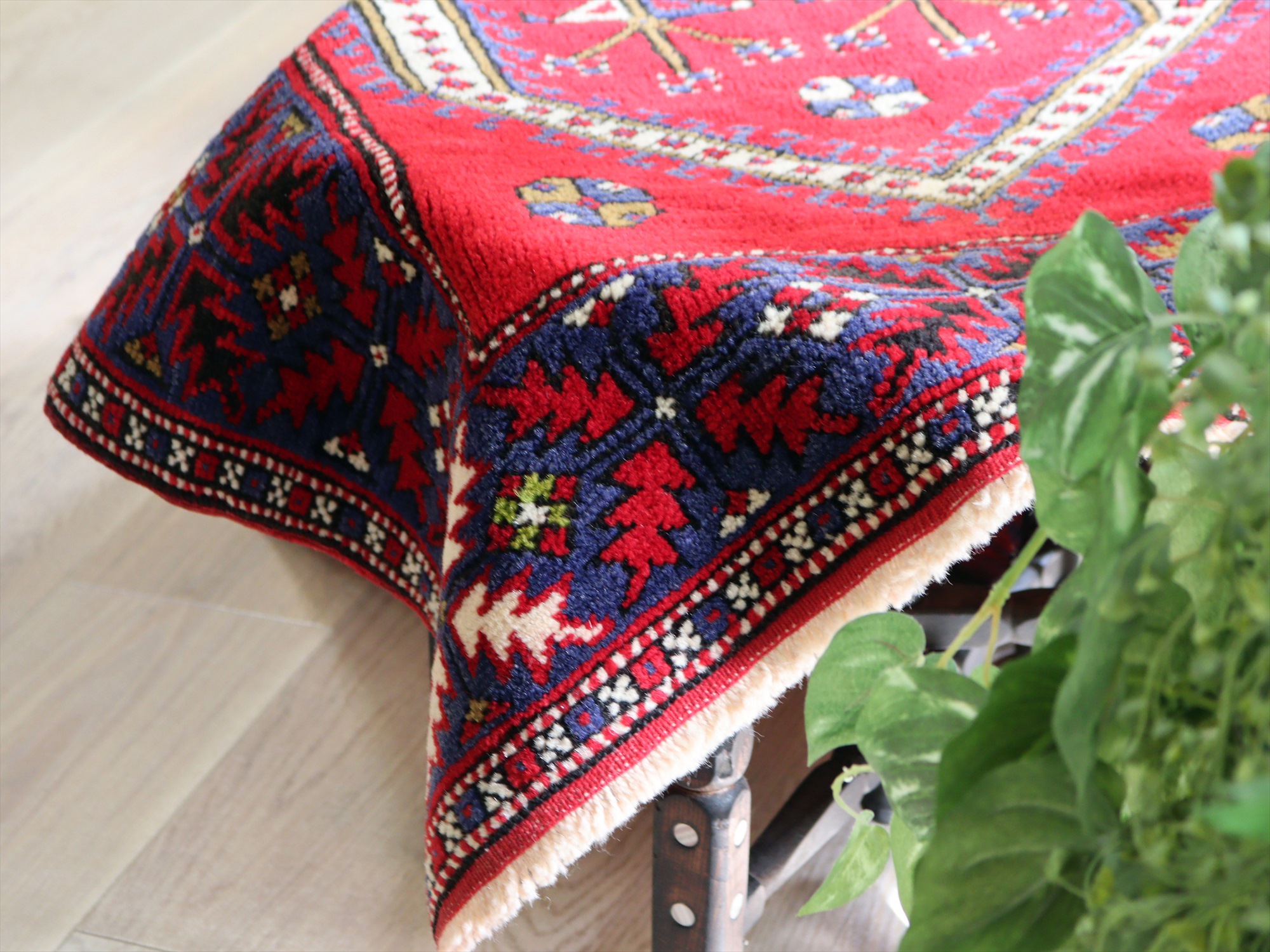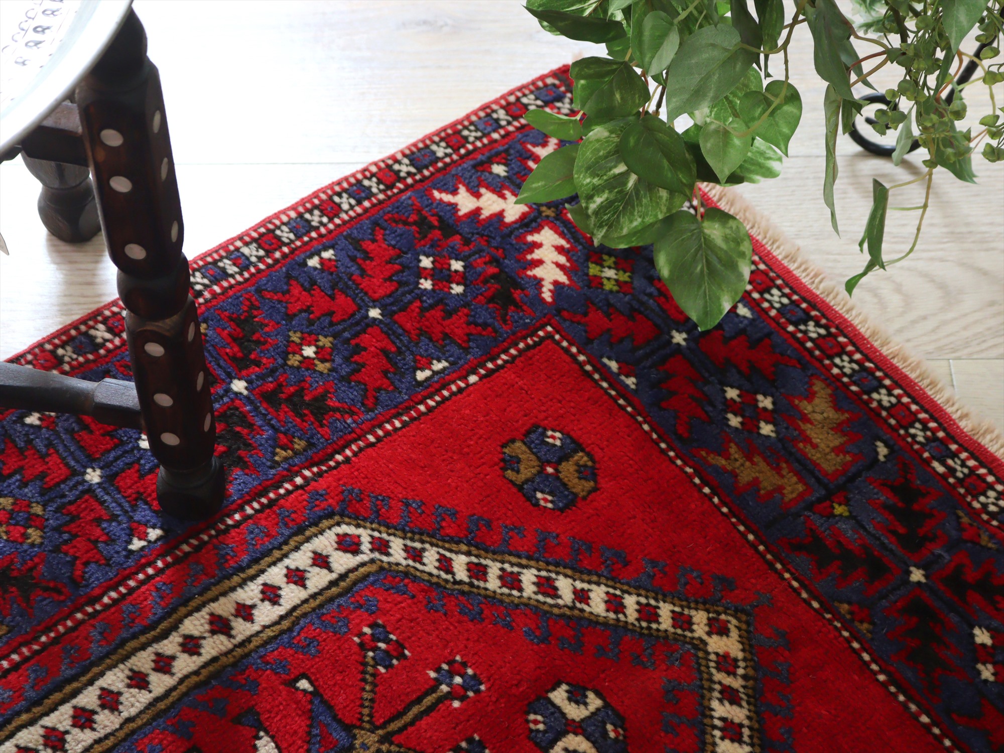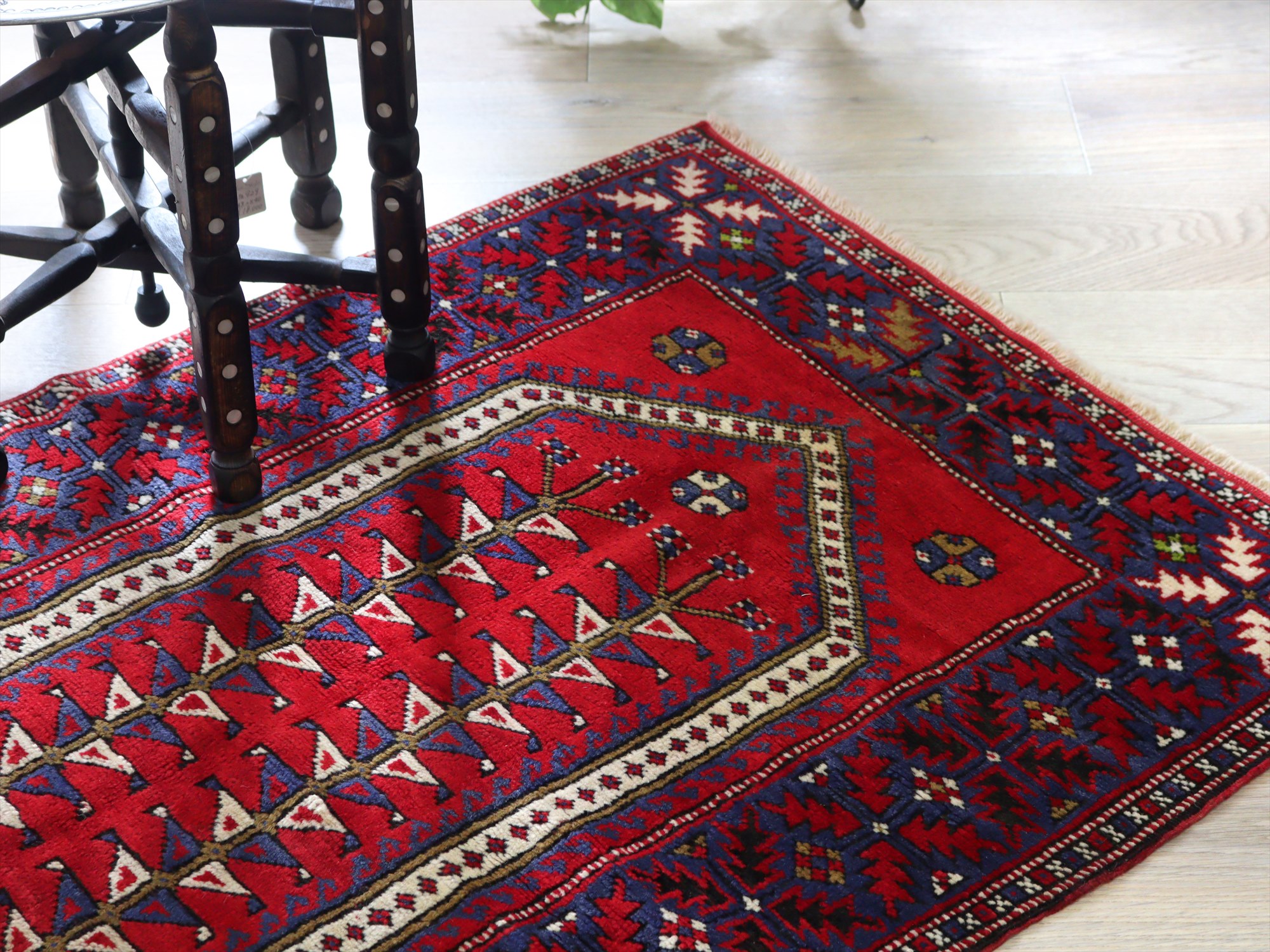 - 【15%OFF】ミフラープと生命の樹 トライバルラグ129×89cm トルコの手織り絨毯 レッド&ネイビー