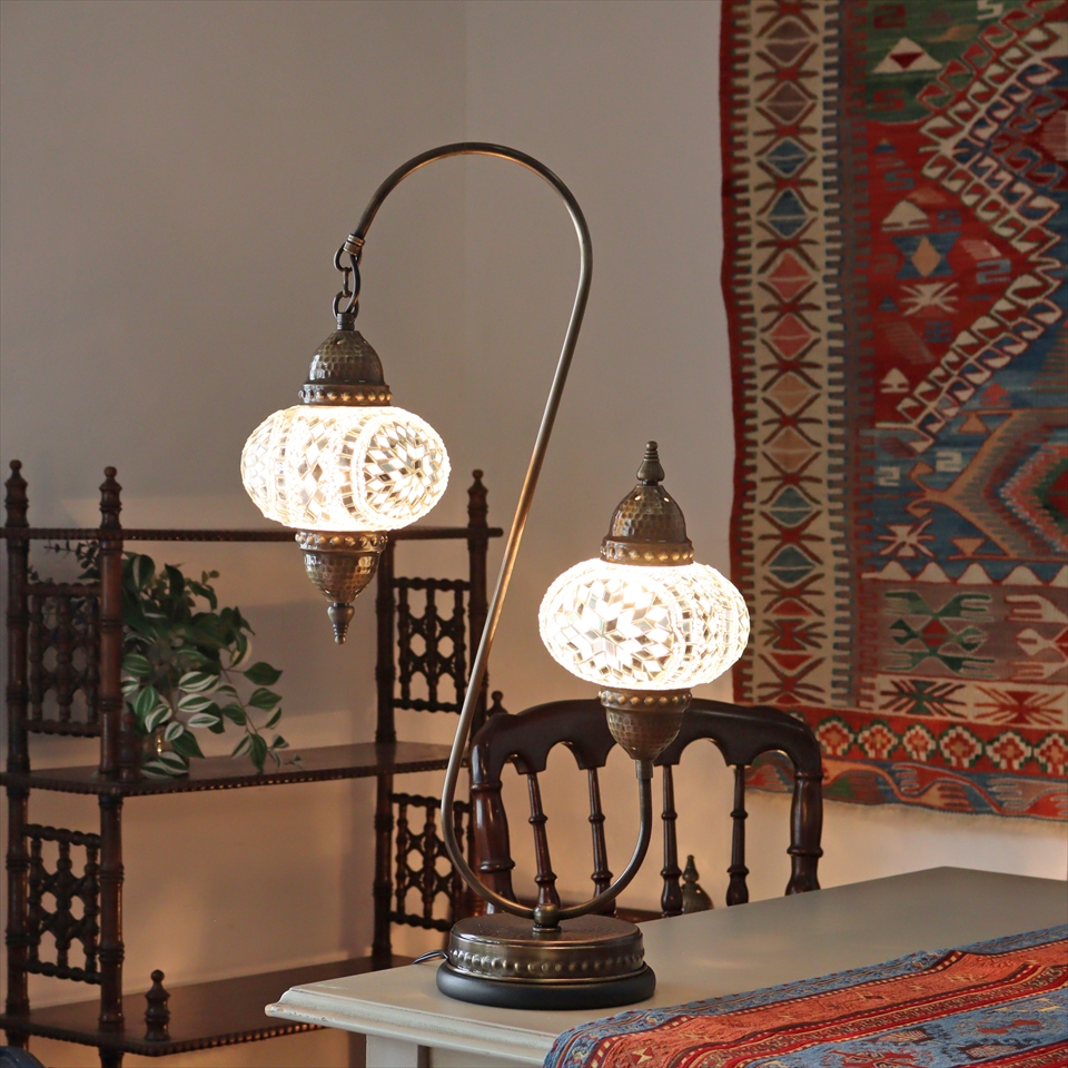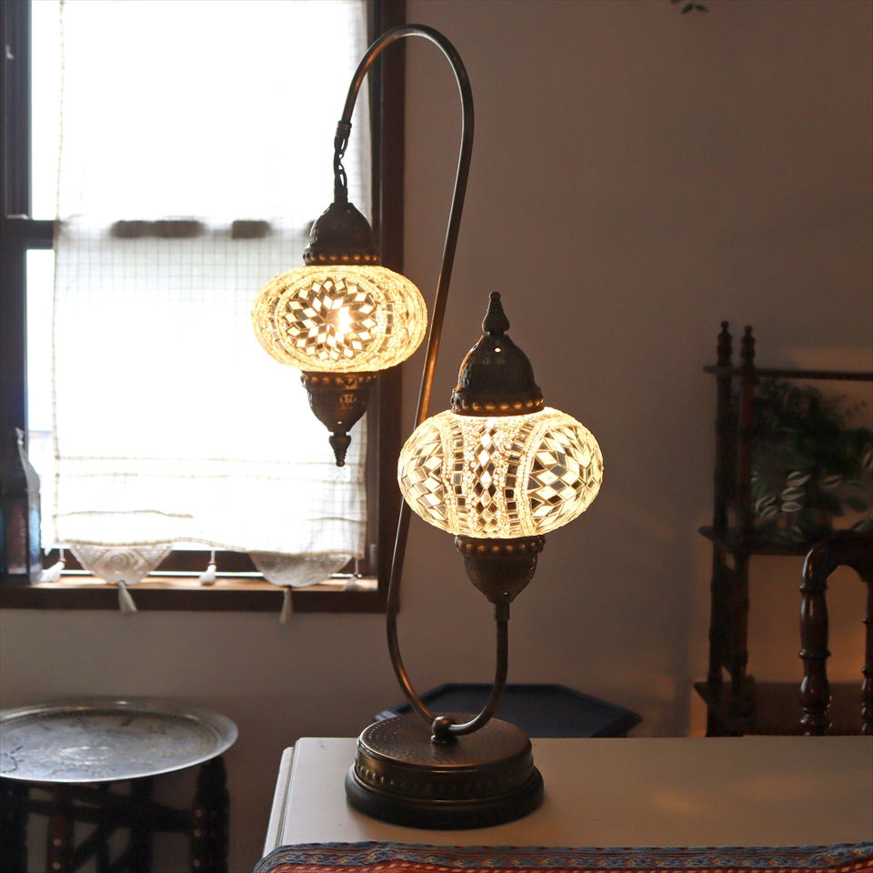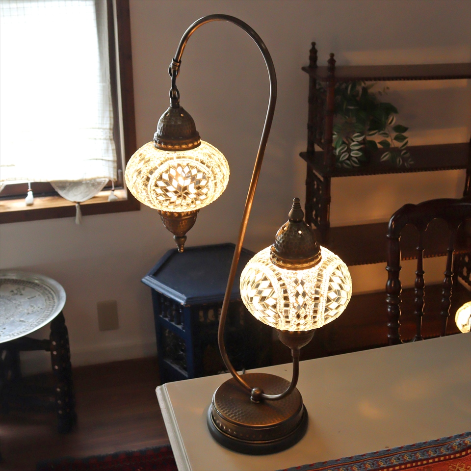 - 【10%OFF】トルコランプ モザイクランプ スタンドランプ 2灯 全高67cm ホワイト