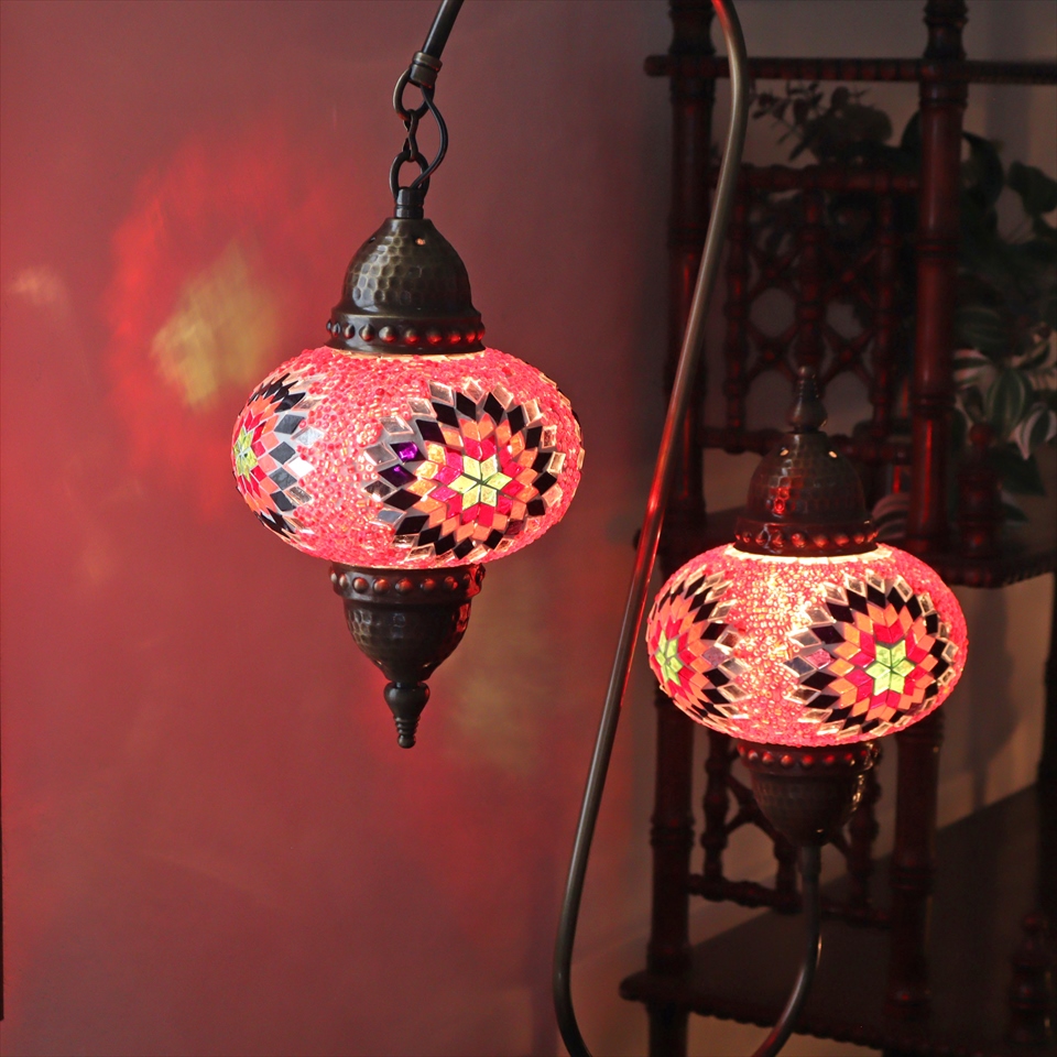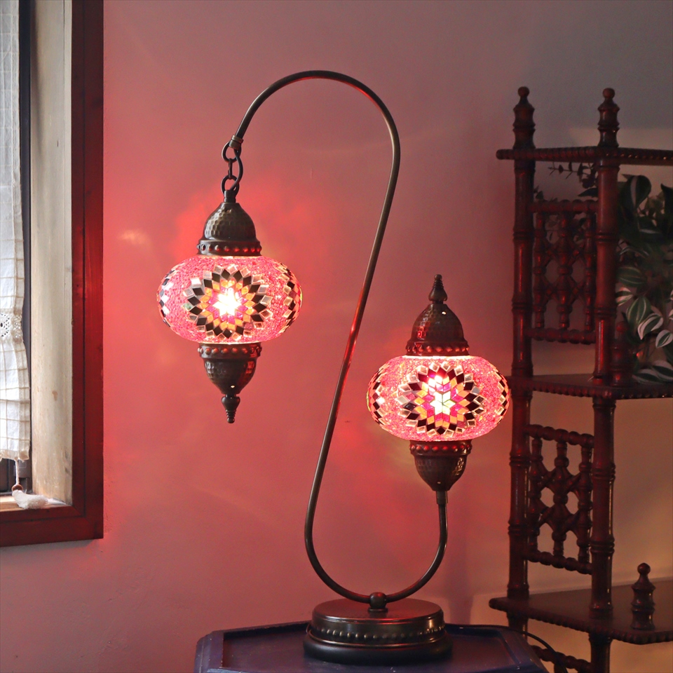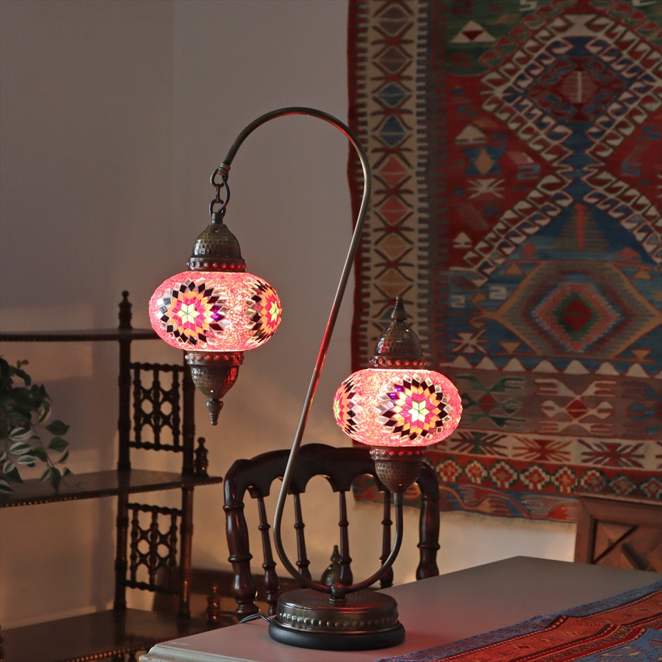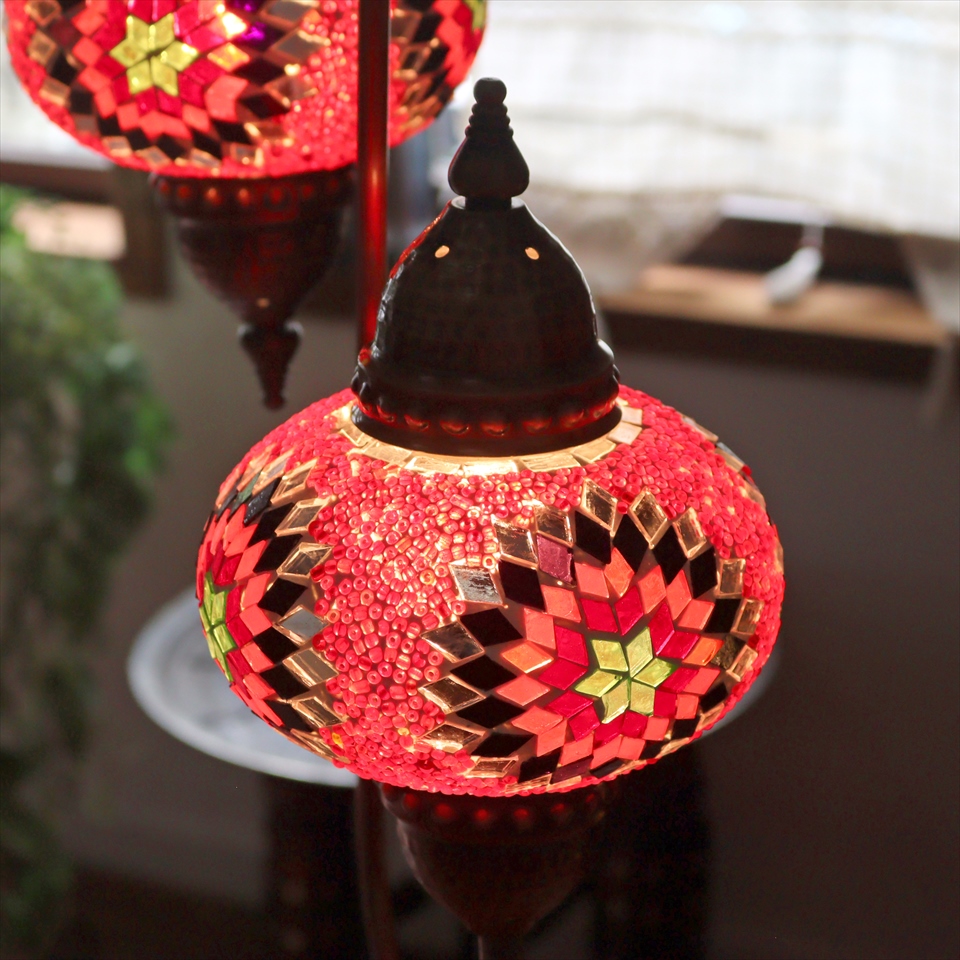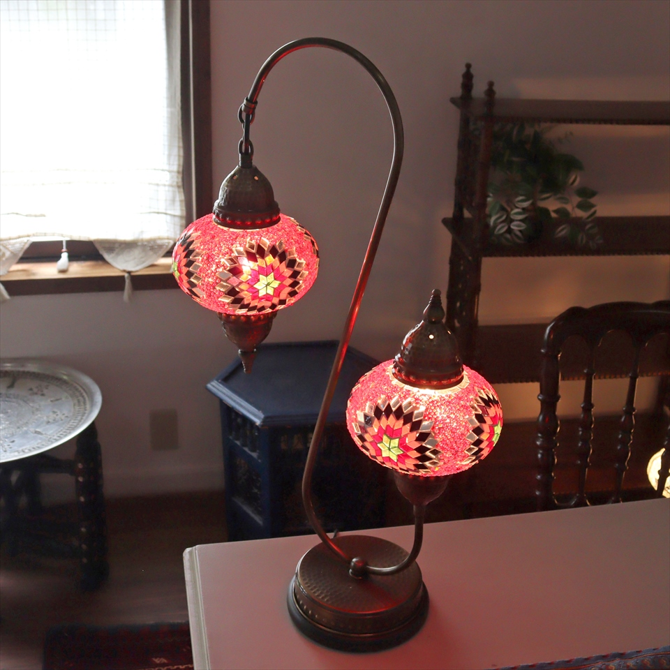 - 【10%OFF】トルコランプ モザイクランプ スタンドランプ 2灯 全高67cm レッド