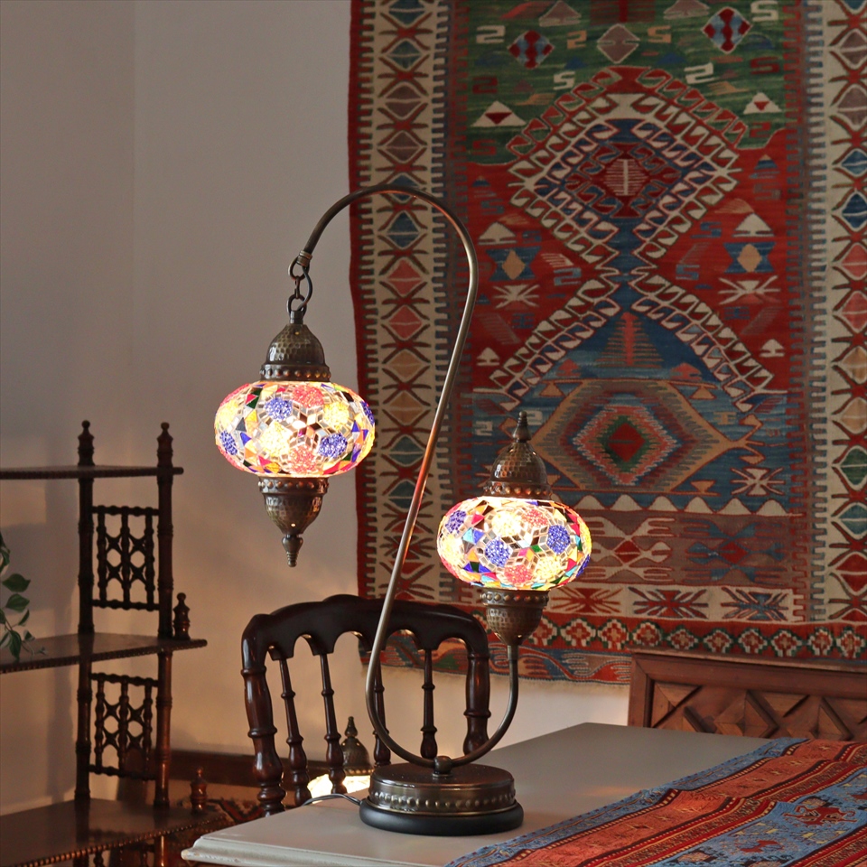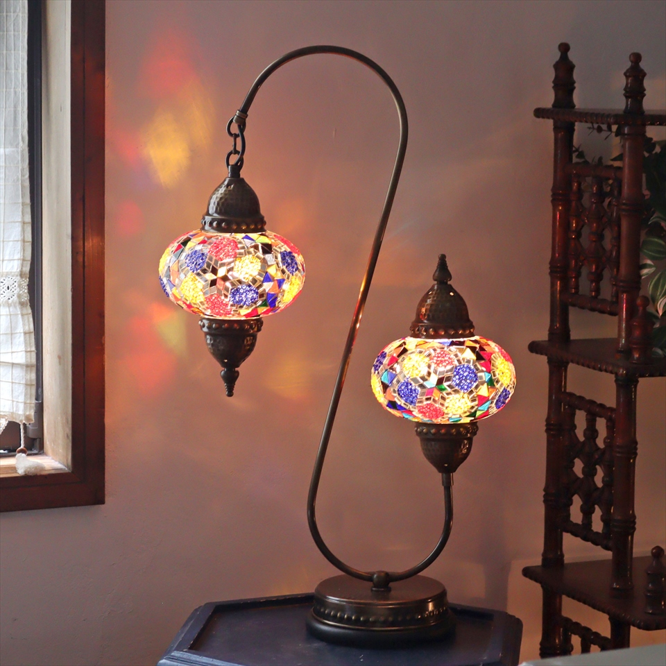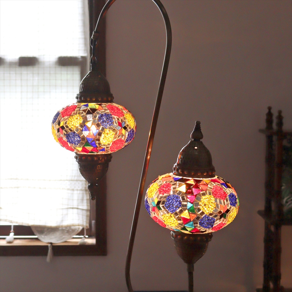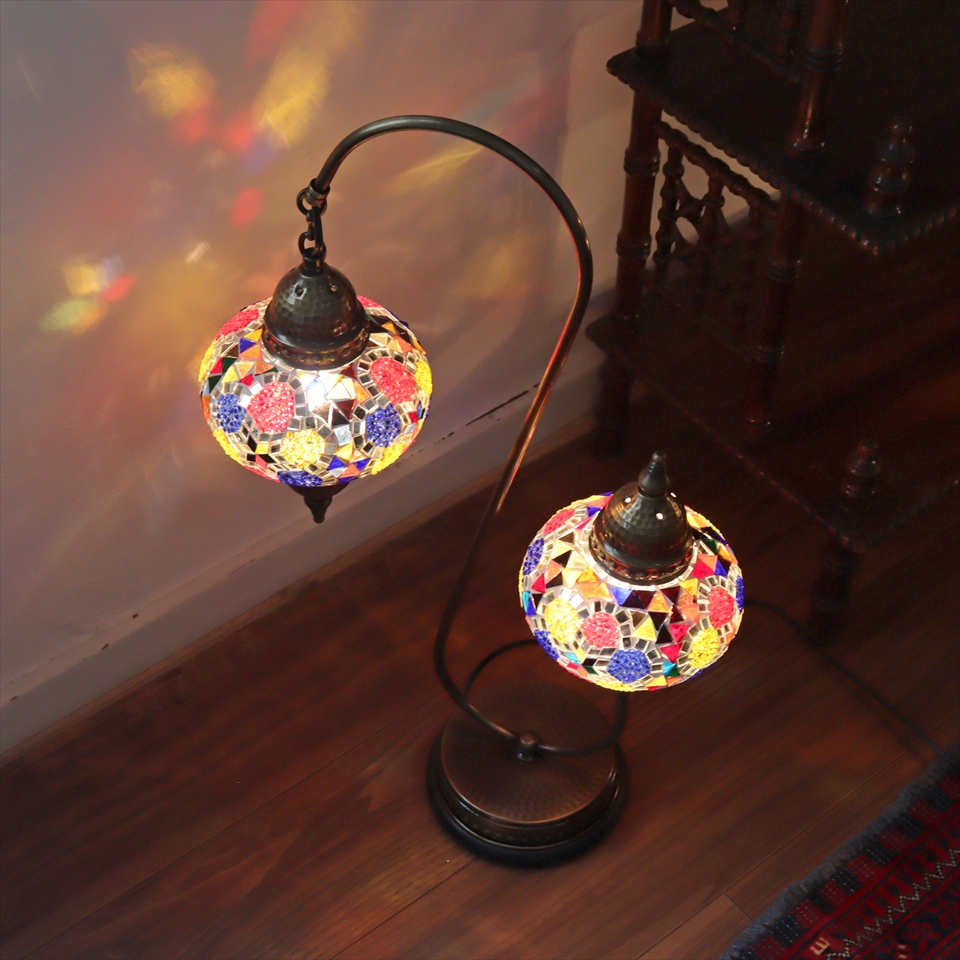 【10%OFF】トルコランプ モザイクランプ スタンドランプ 2灯 全高67cm ミックスカラー