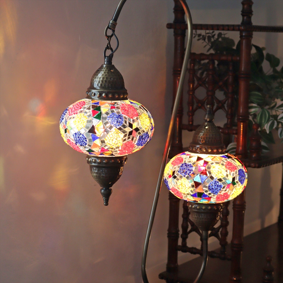 トルコで1つ1つ手作りされた、モザイクガラス球が使われたスタンドランプ。