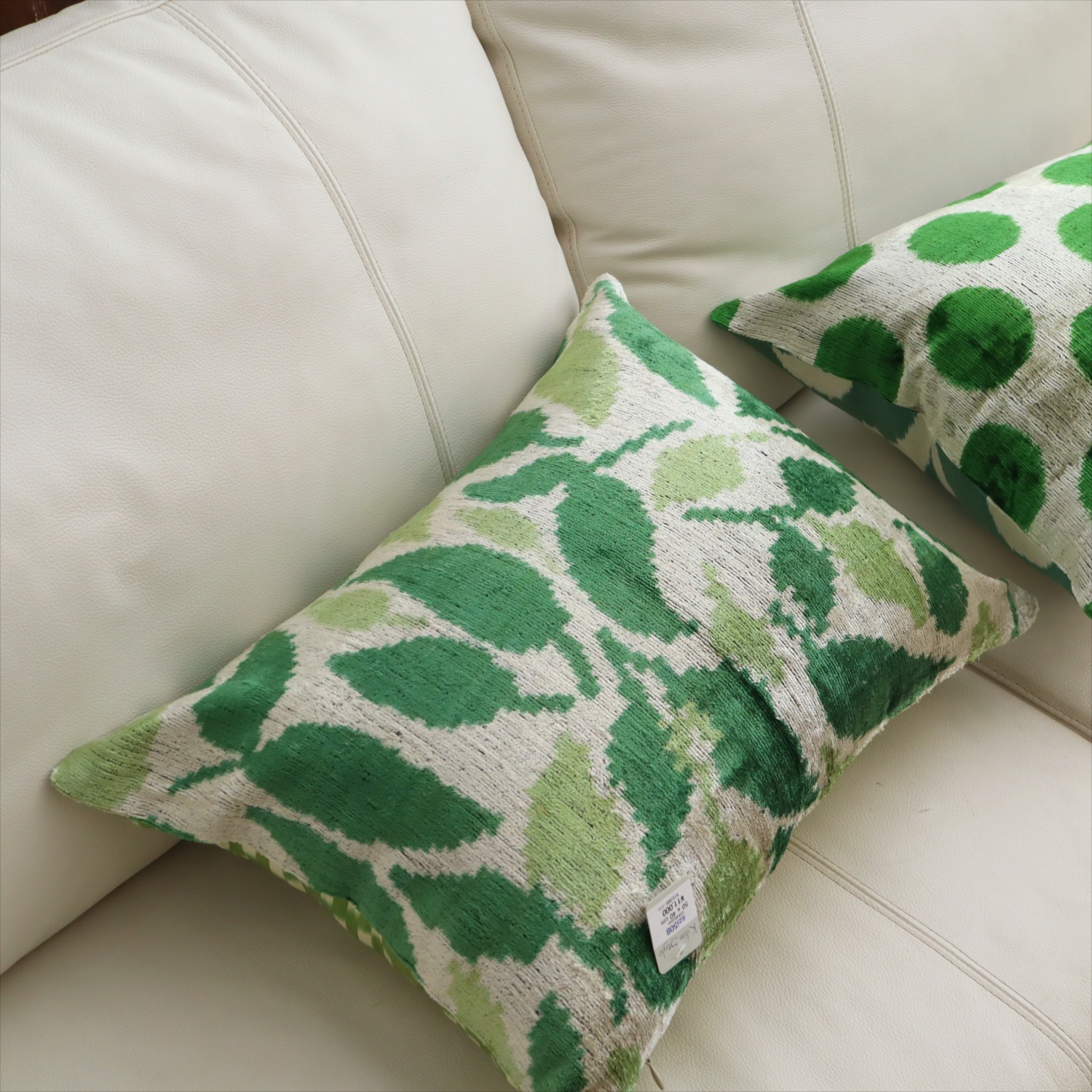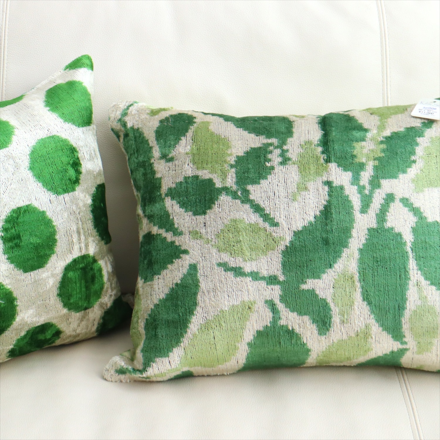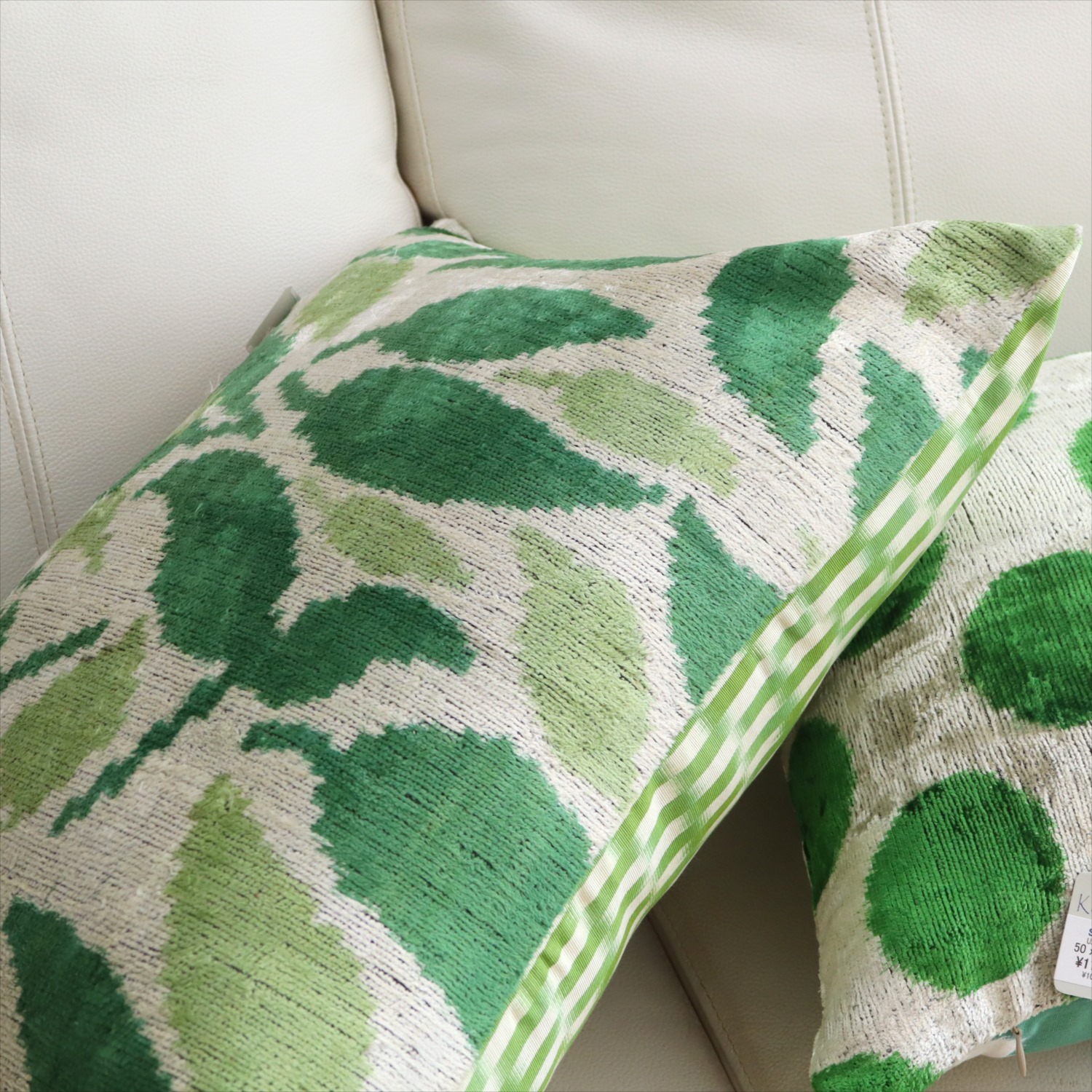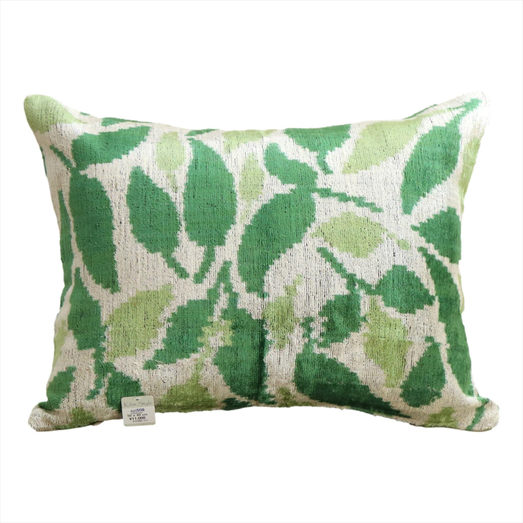 - アトラス ベルベットイカットクッションカバー 両面シルク 木の葉 Silk Velvet Cushion - Double-Sided Design