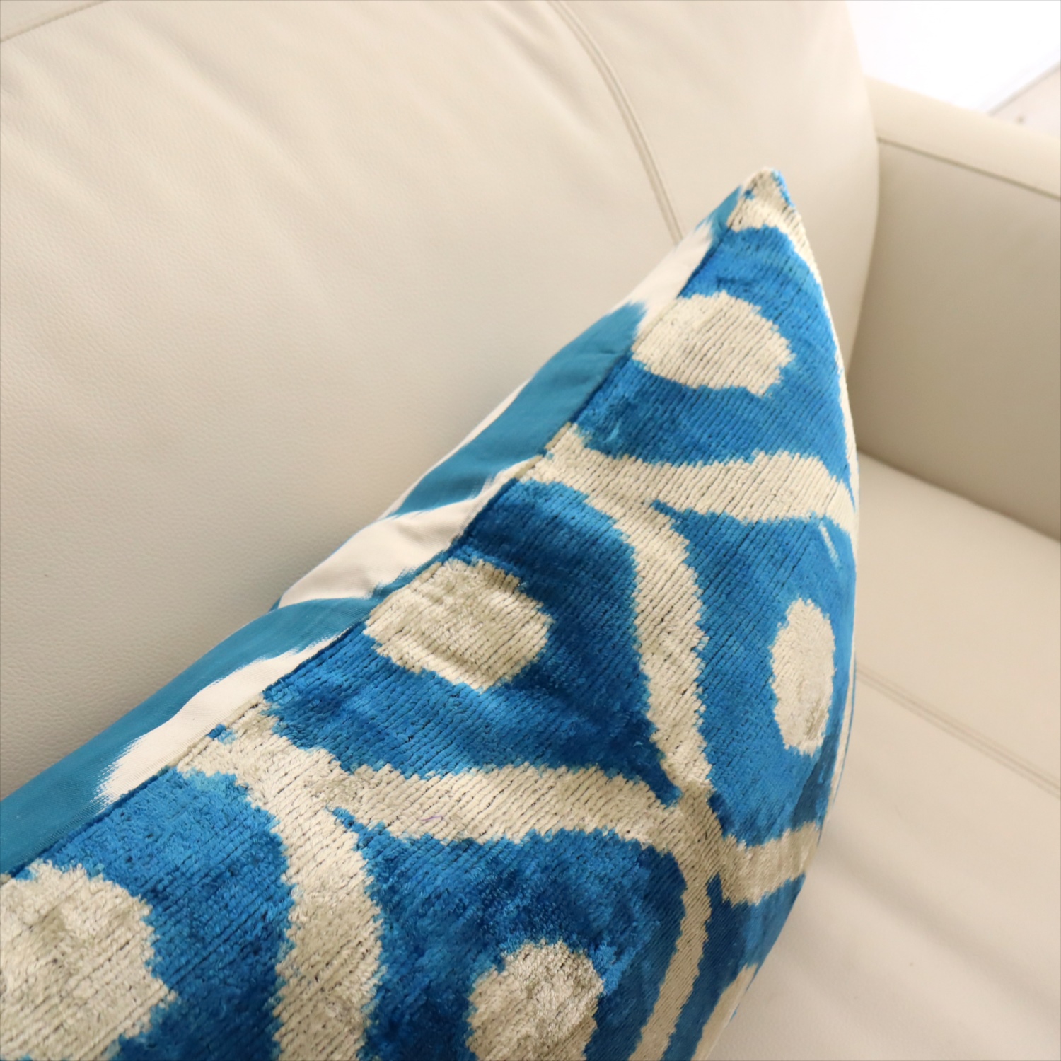 - アトラス ベルベットイカットクッションカバー 両面シルク ブルー ランタン柄 Silk Velvet Cushion - Double-Sided Design