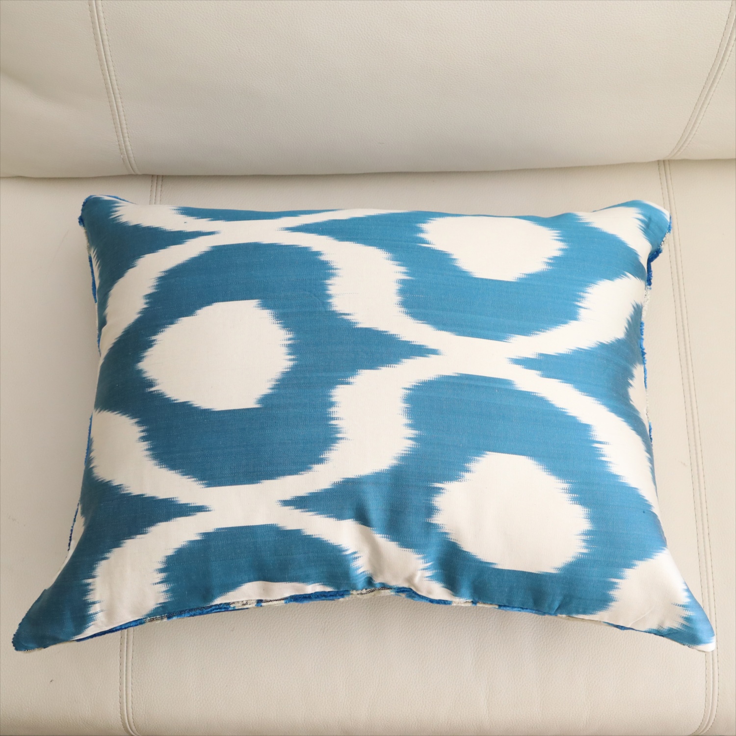 ウズベキスタンで「アトラス」と呼ばれる、中央アジアの女性たちの衣装用に織られた、手機織りの絣布(かすり・イカット)を使ったクッションカバー。