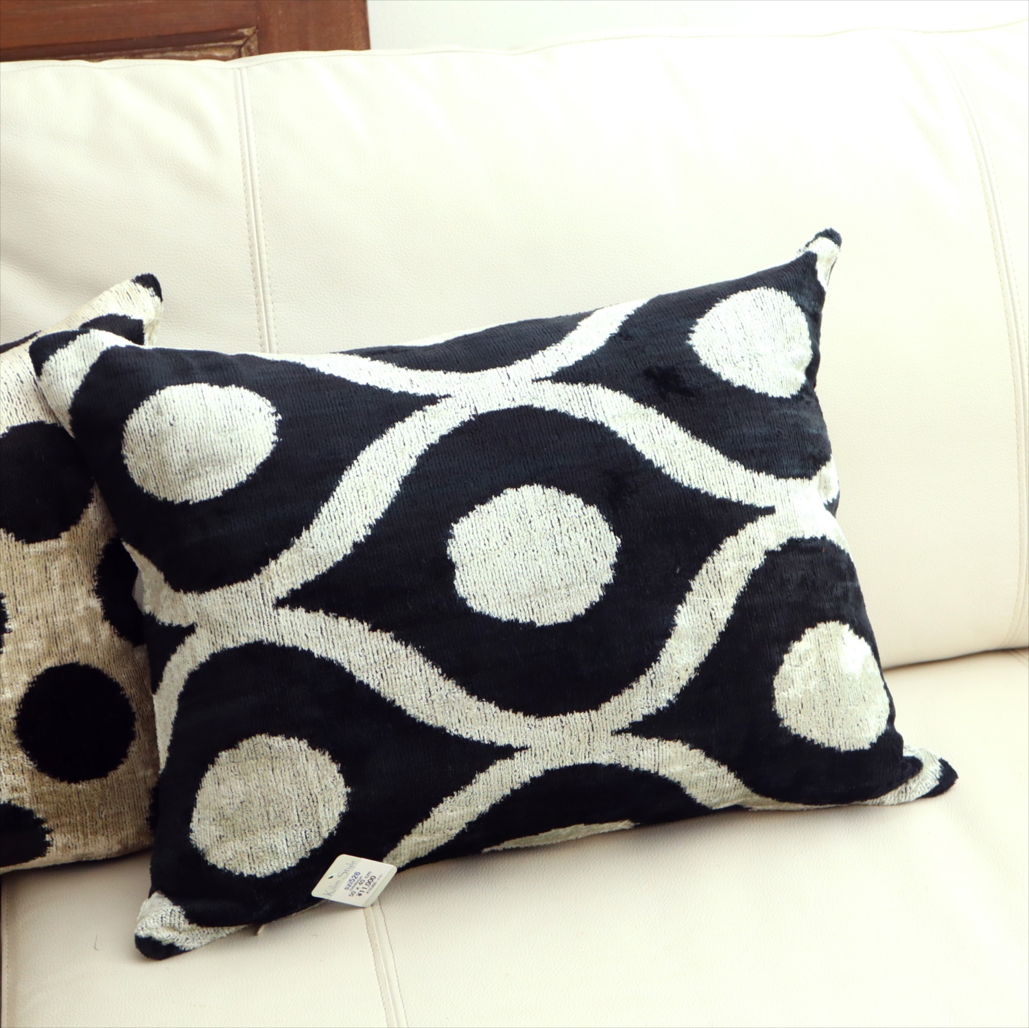 - アトラス ベルベットイカットクッションカバー 両面シルク ブラック ランタン柄 Silk Velvet Cushion - Double-Sided Design