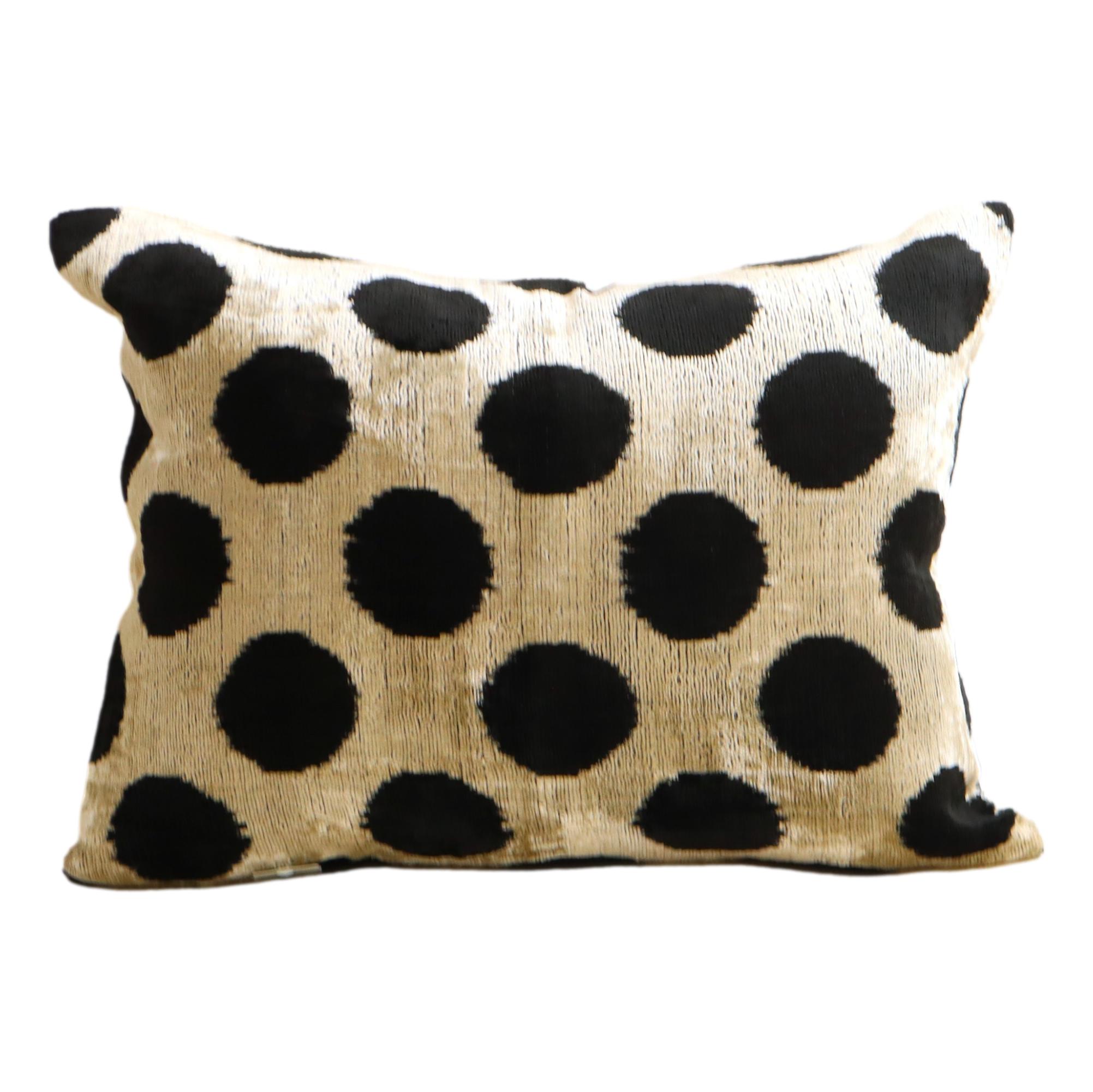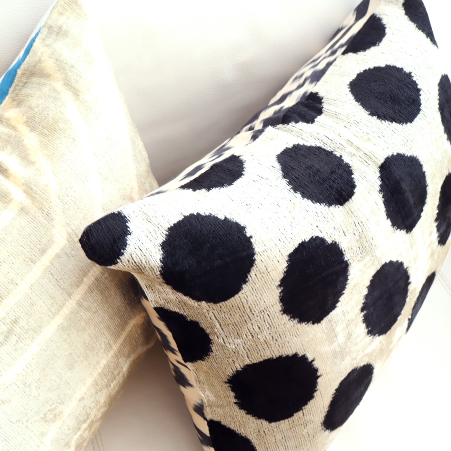 - アトラス ベルベットイカットクッションカバー 両面シルク 水玉 ドット ブラック Silk Velvet Cushion - Double-Sided Design