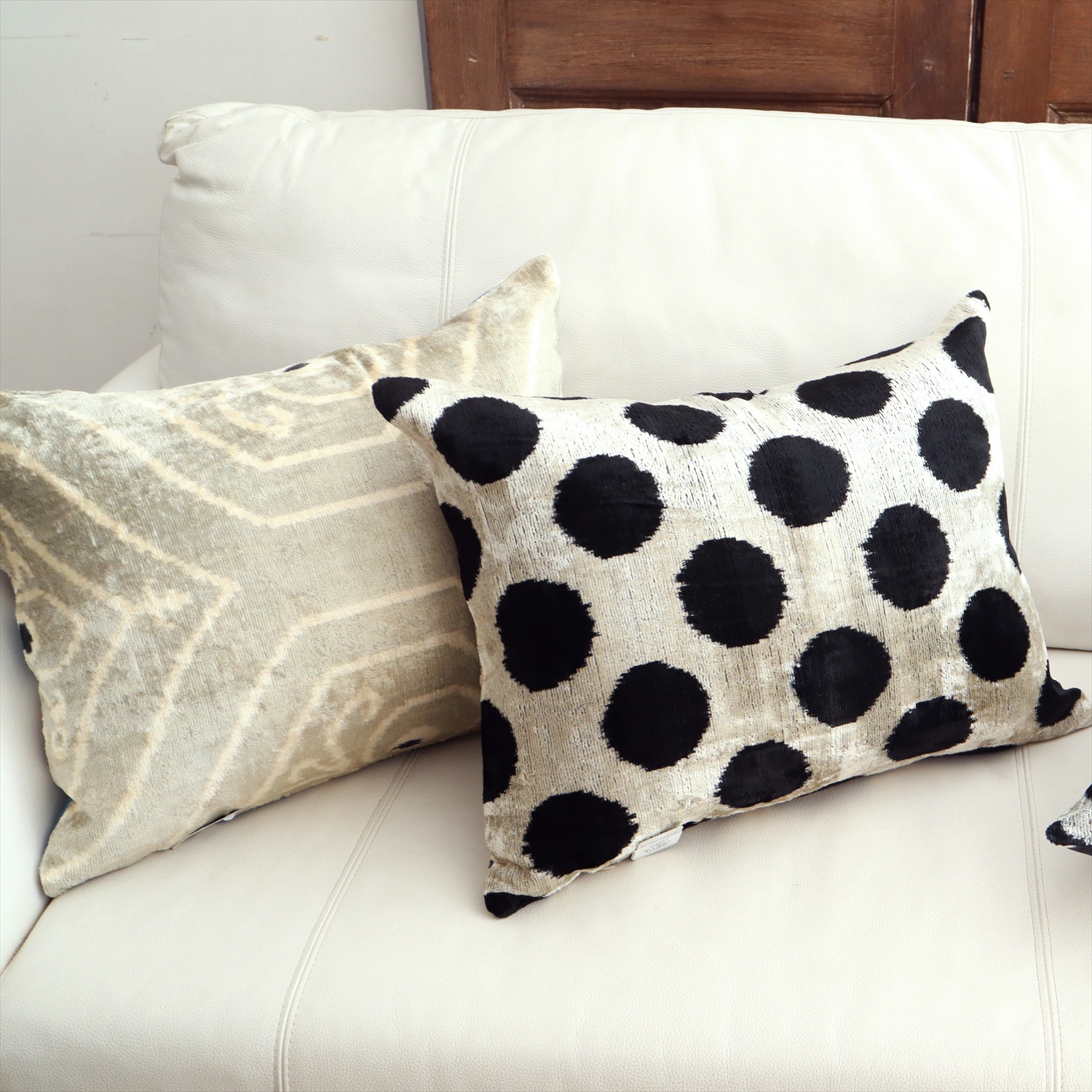 アトラス ベルベットイカットクッションカバー 両面シルク ライトグレー タイル柄 Silk Velvet Cushion - Double-Sided Design