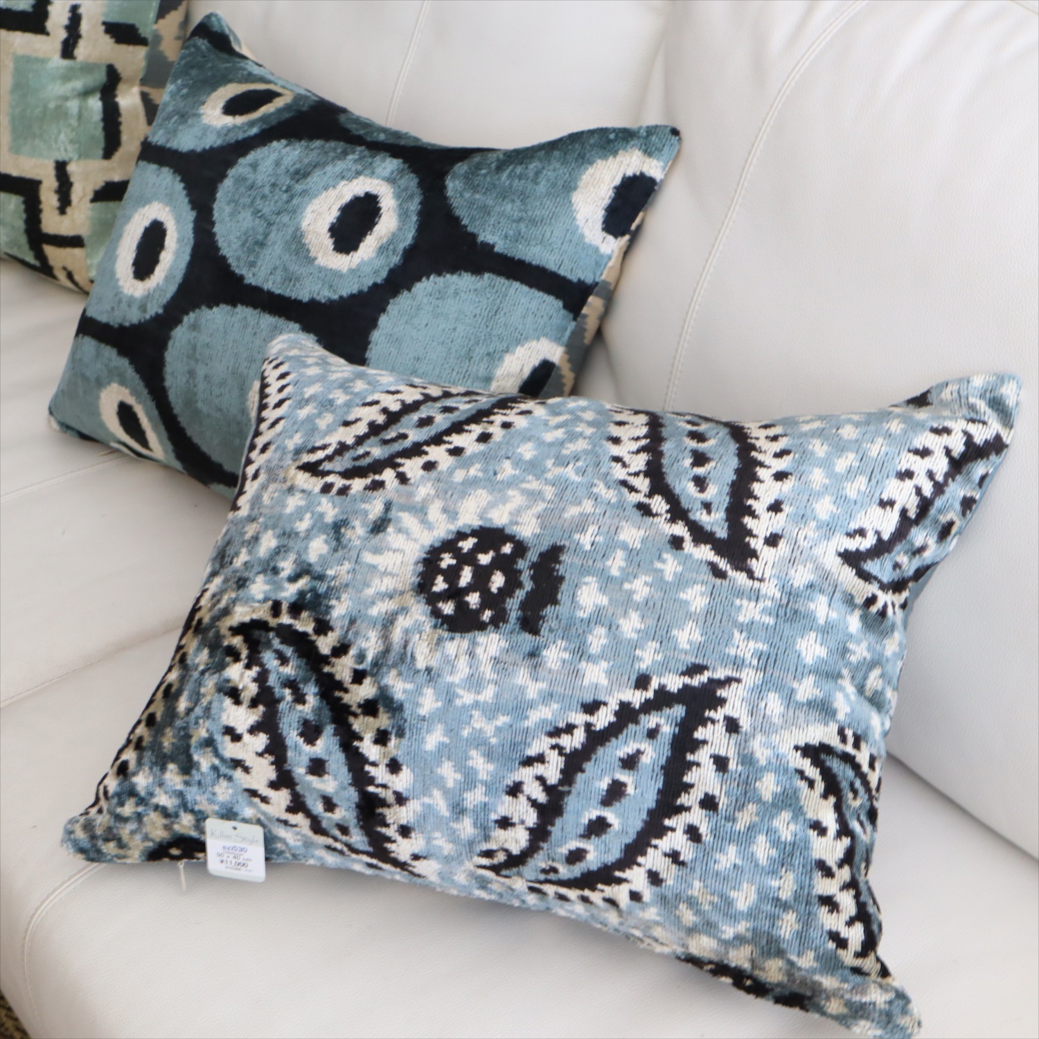 - アトラス ベルベットイカットクッションカバー 両面シルク ペイズリー グレー Silk Velvet Cushion - Double-Sided Design