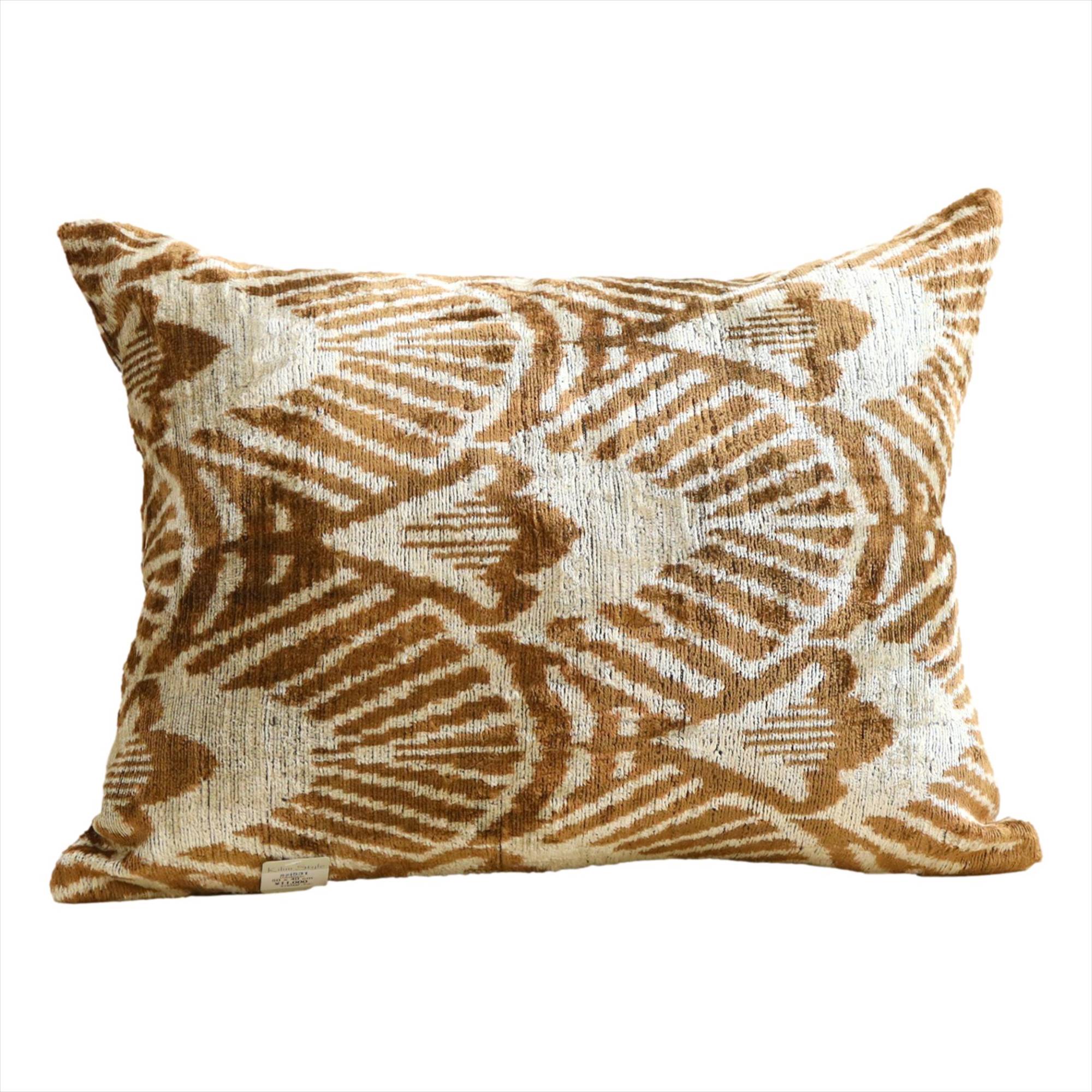 - アトラス ベルベットイカットクッションカバー 両面シルク 扇 羽 ブラウン Silk Velvet Cushion - Double-Sided Design