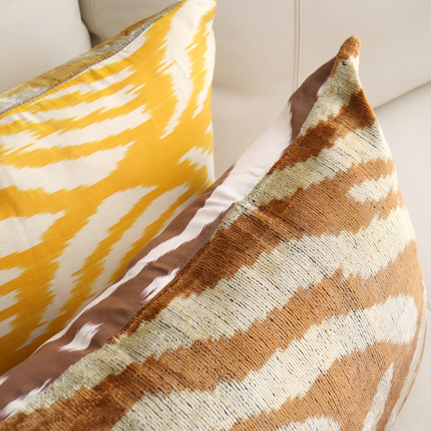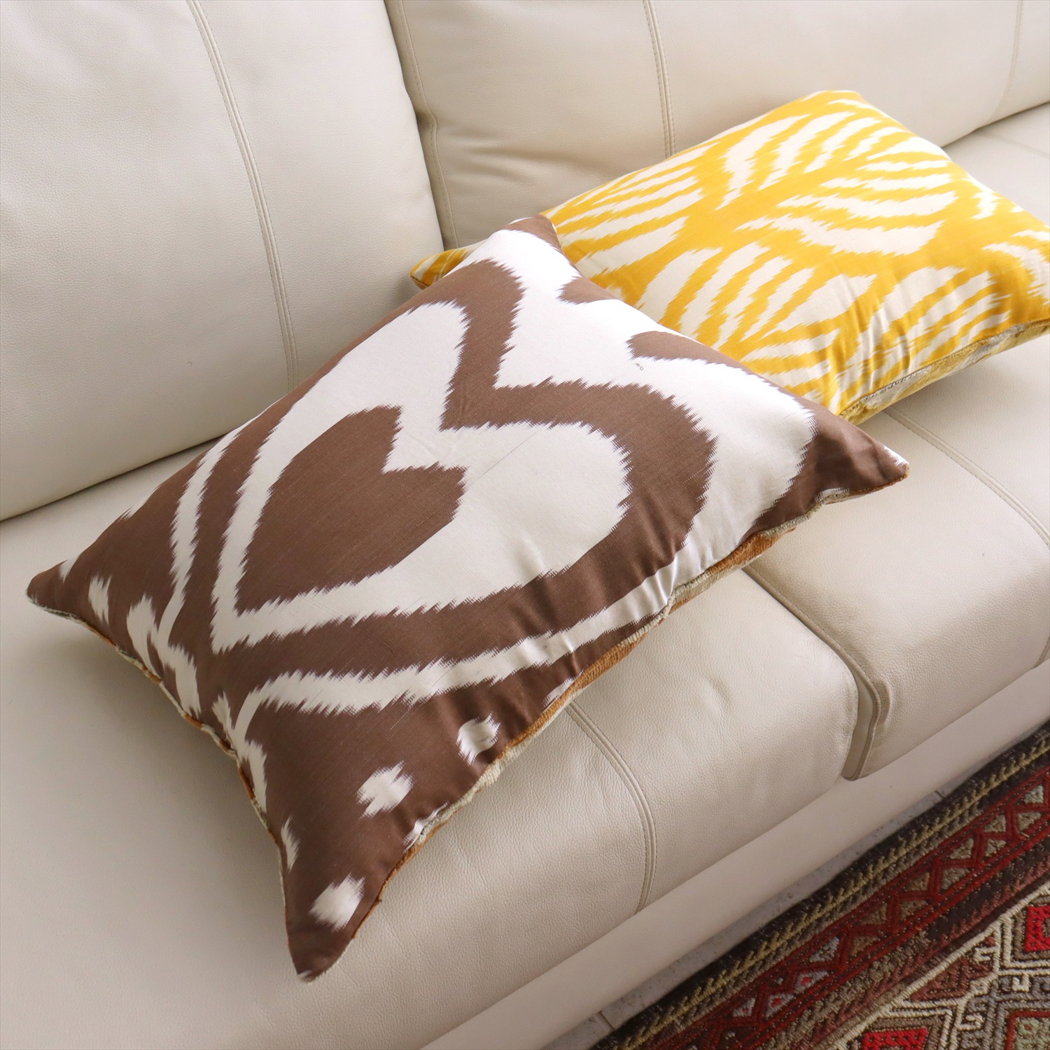 - アトラス ベルベットイカットクッションカバー 両面シルク ゼブラ柄 ブラウン Silk Velvet Cushion - Double-Sided Design