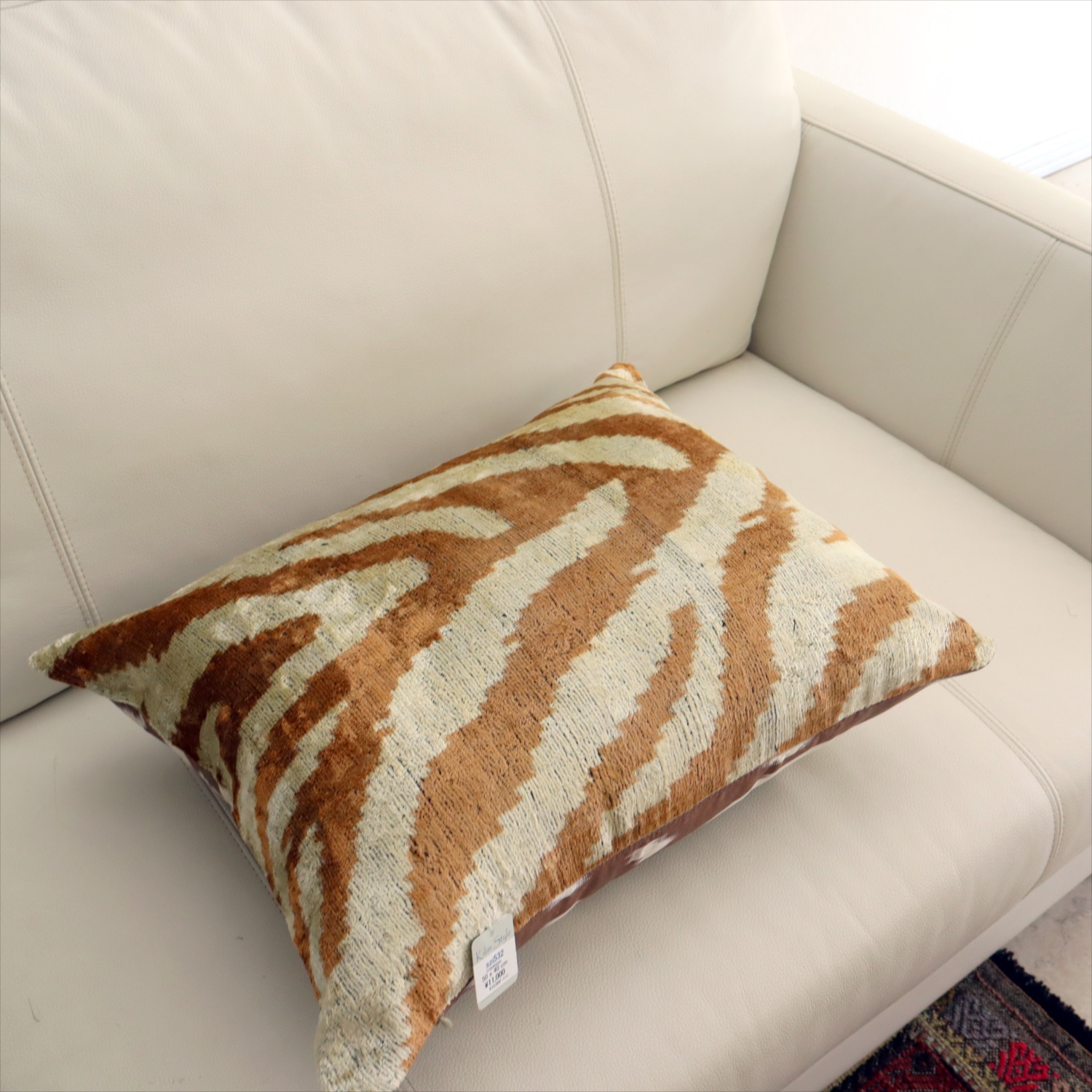 アトラス ベルベットイカットクッションカバー 両面シルク ゼブラ柄 ブラウン Silk Velvet Cushion - Double-Sided Design