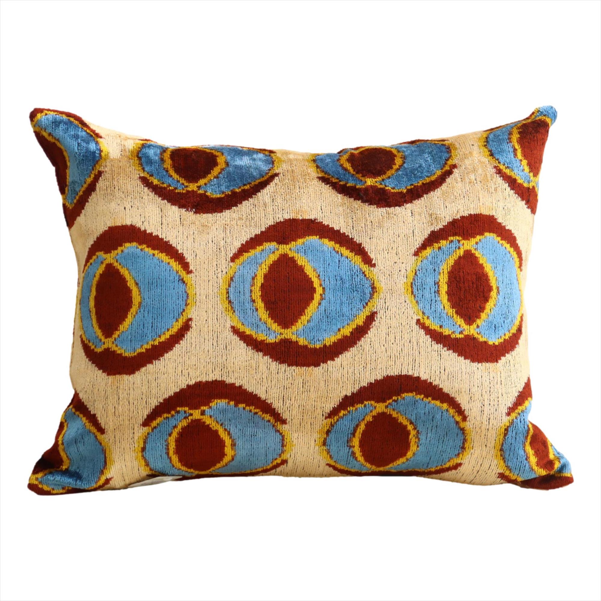 アトラス ベルベットイカットクッションカバー 両面シルク 抽象柄 ターコイズxブラウン Silk Velvet Cushion - Double-Sided Design