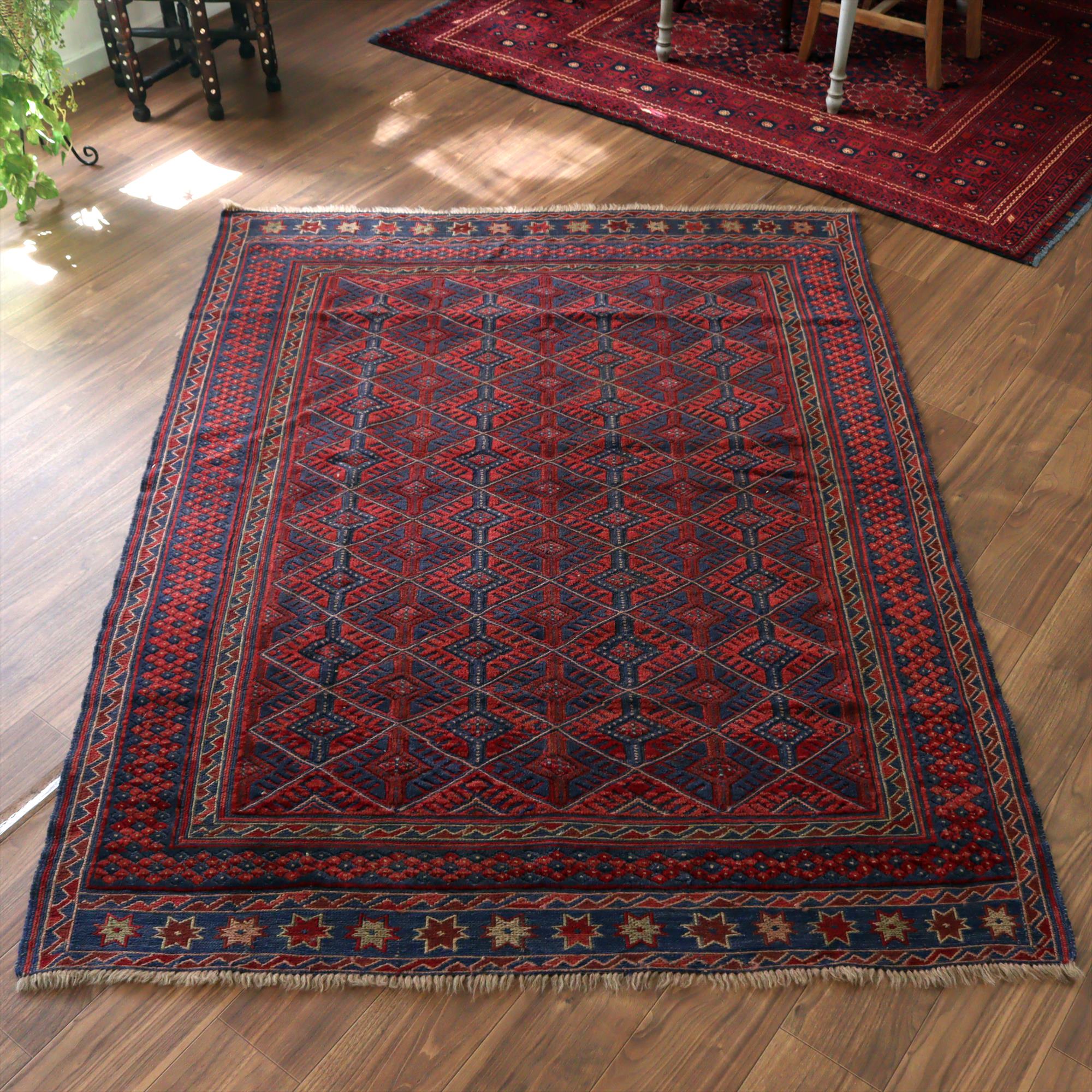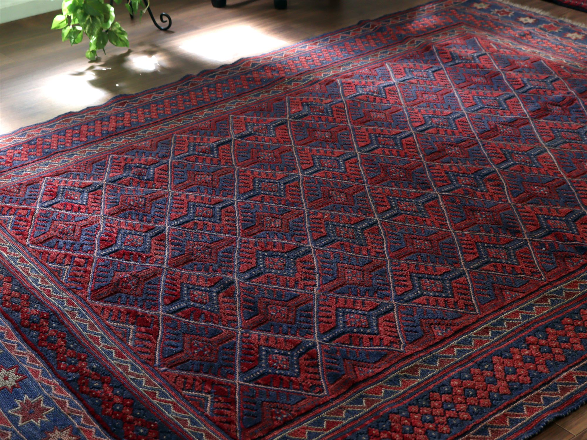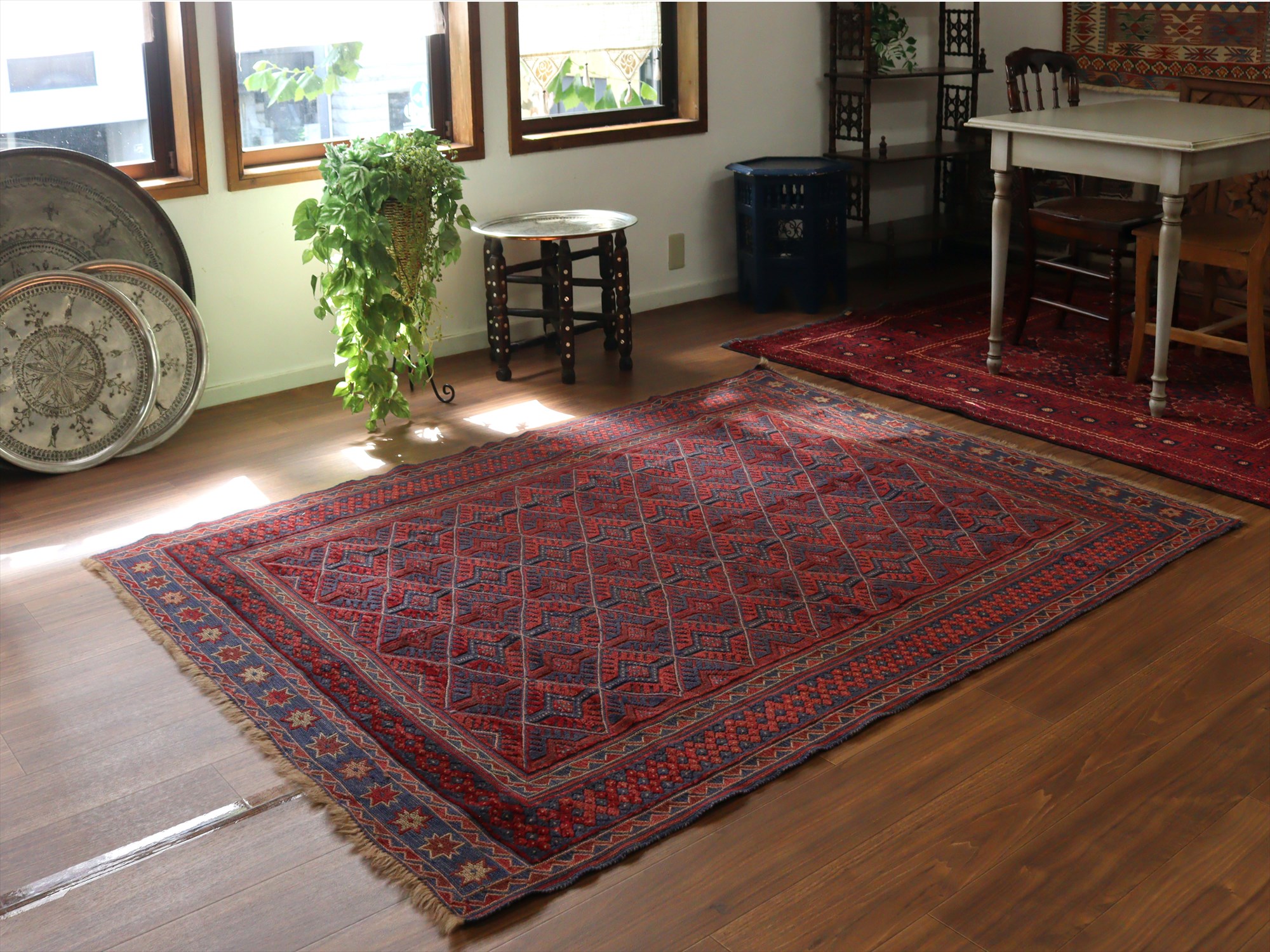 - オールドキリム アフガニスタン ミシュワニ194×149cm 連なる幾何学模様