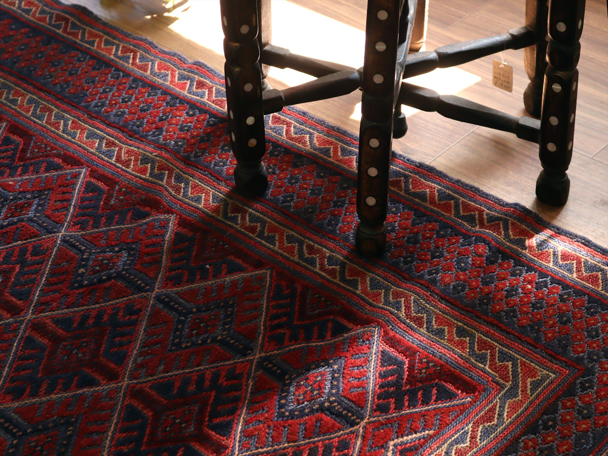 アフガニスタン東部、イランと国境を接するエリアの緻密な織りのキリムです。細かい織り目のスマック織りをベースに、立体感のあるカーペット織りでモチーフをレリーフのように織り込んだ1枚。
