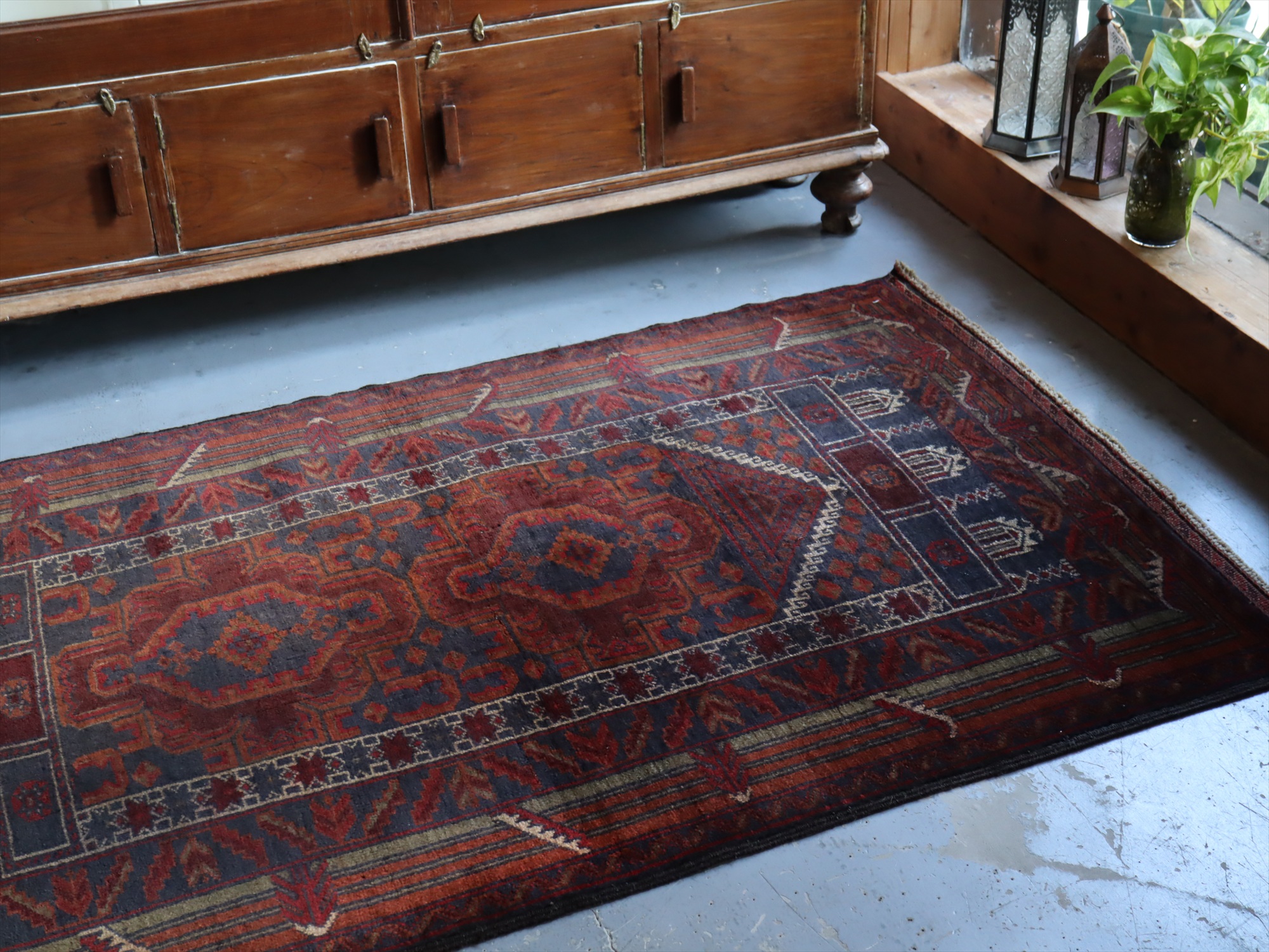 - トライバルラグ バルーチ136×89cm 手織りラグ ミフラープ