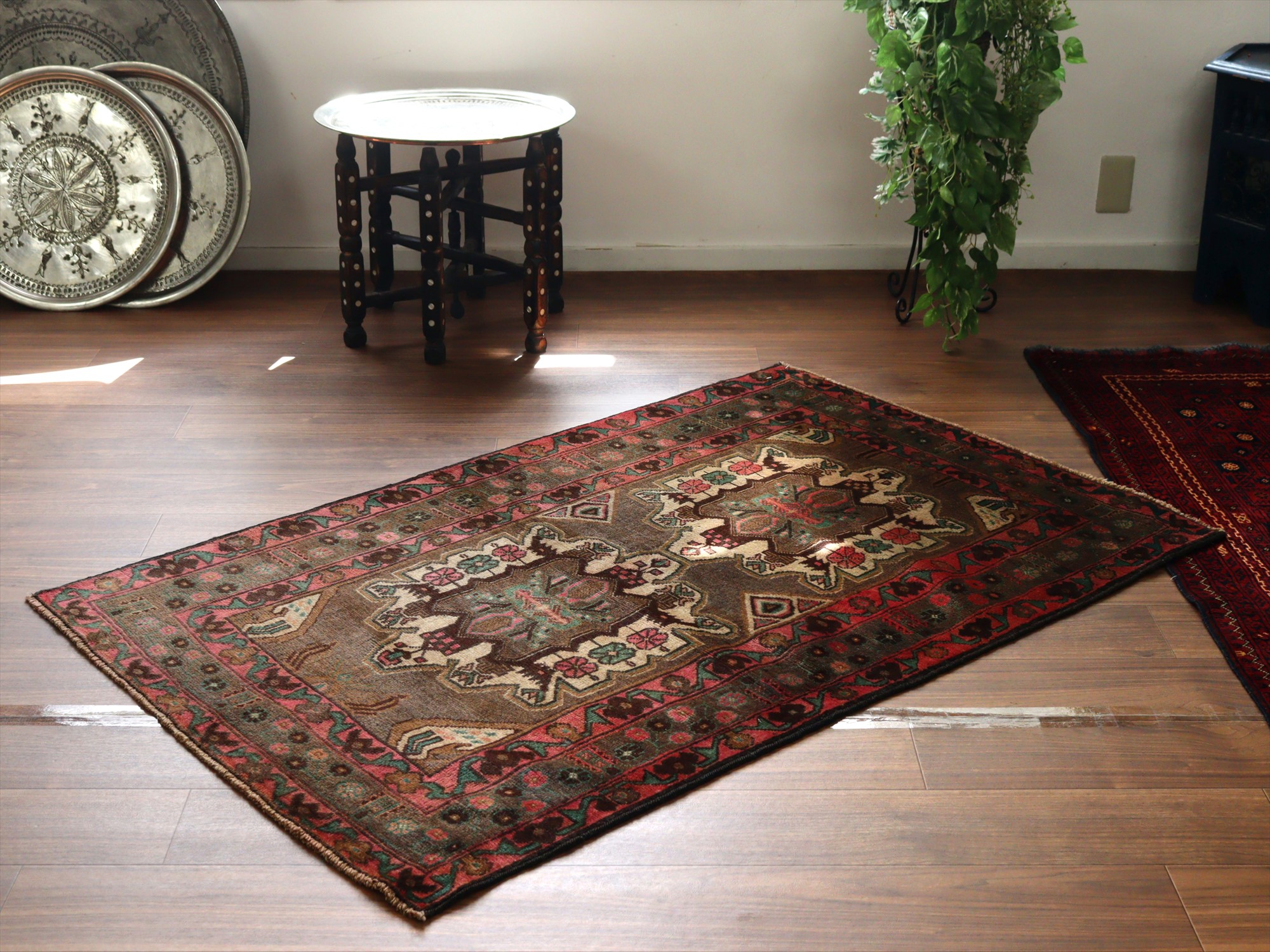 - トライバルラグ バルーチ148×95cm 2つのメダリオン ブラウン