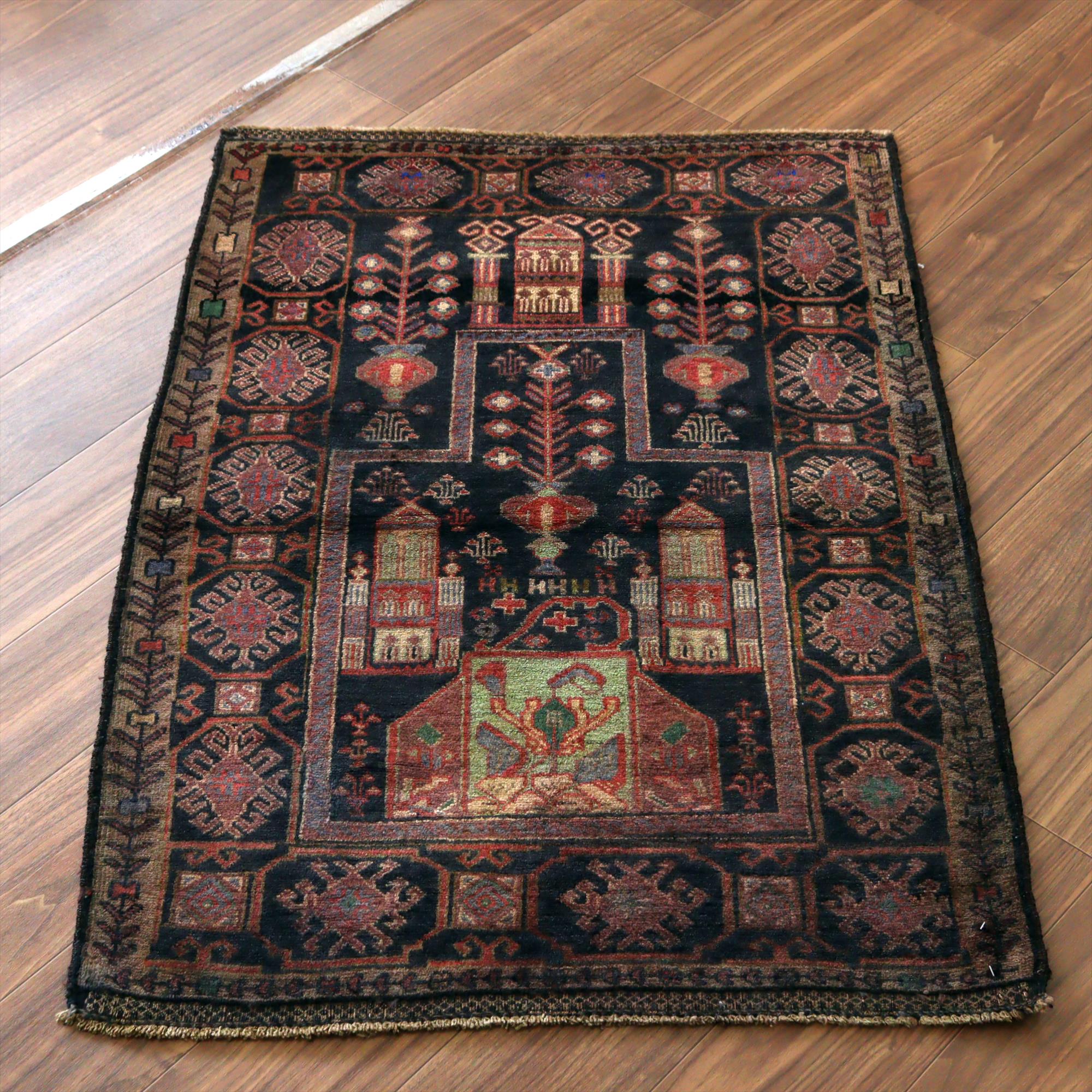 - トライバルラグ バルーチ121×82cm ミフラープ ブラック